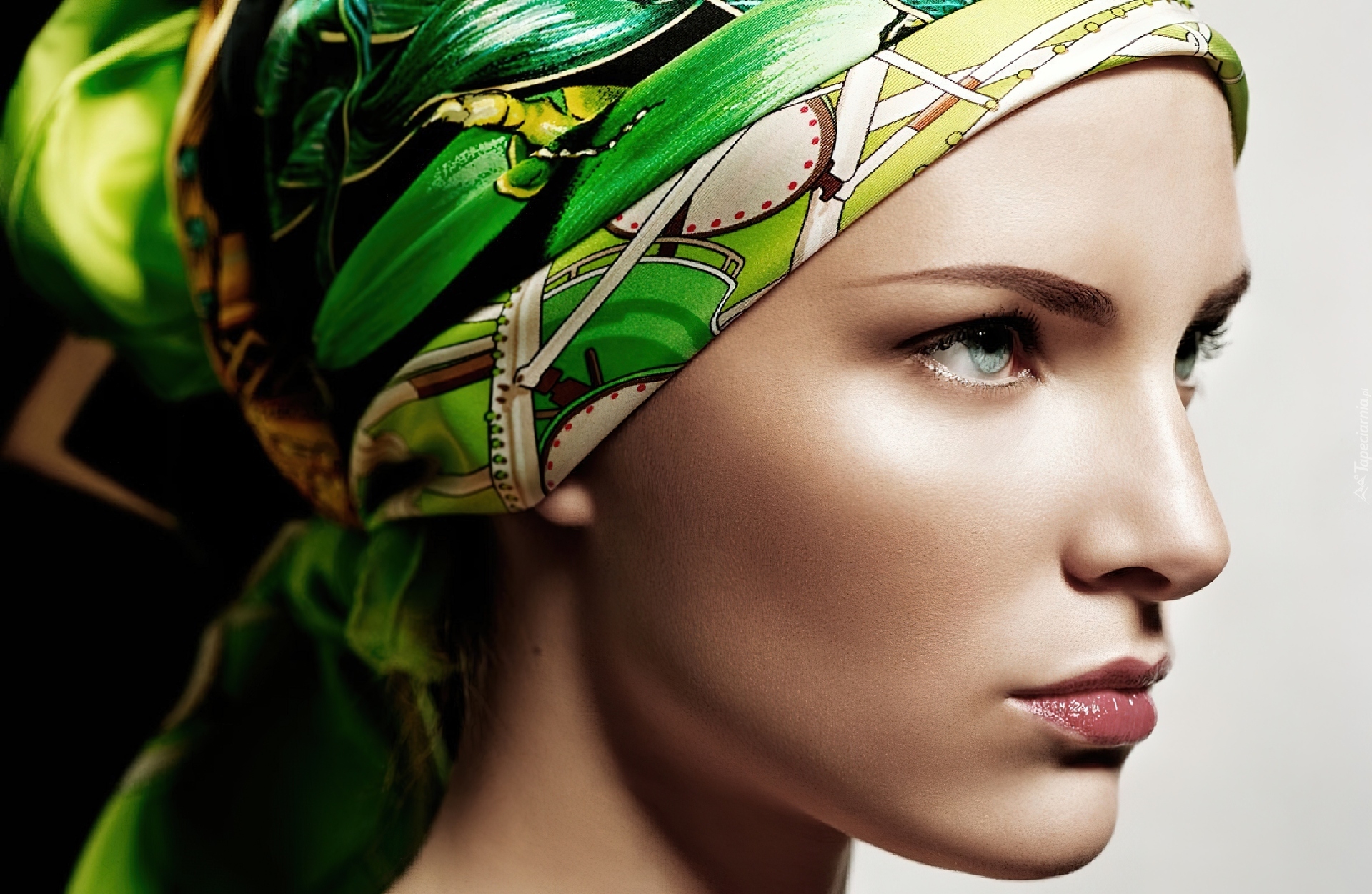 Edytor tapety: Kobieta, Zielona, Chustka, Twarz