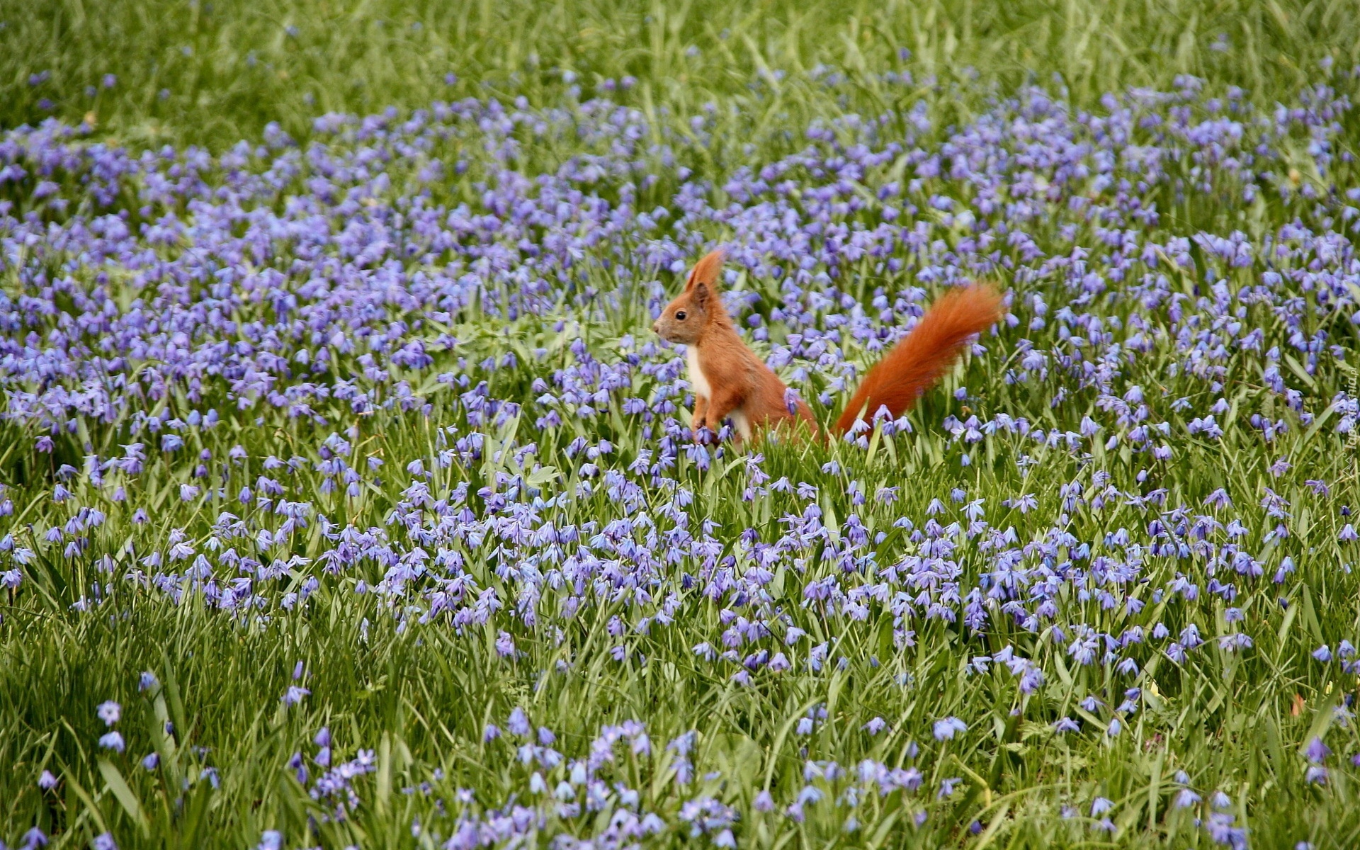 Edytor tapety: Kwiecista, Łąka, Wiewiórka, Dzwoneczki, Cebulice