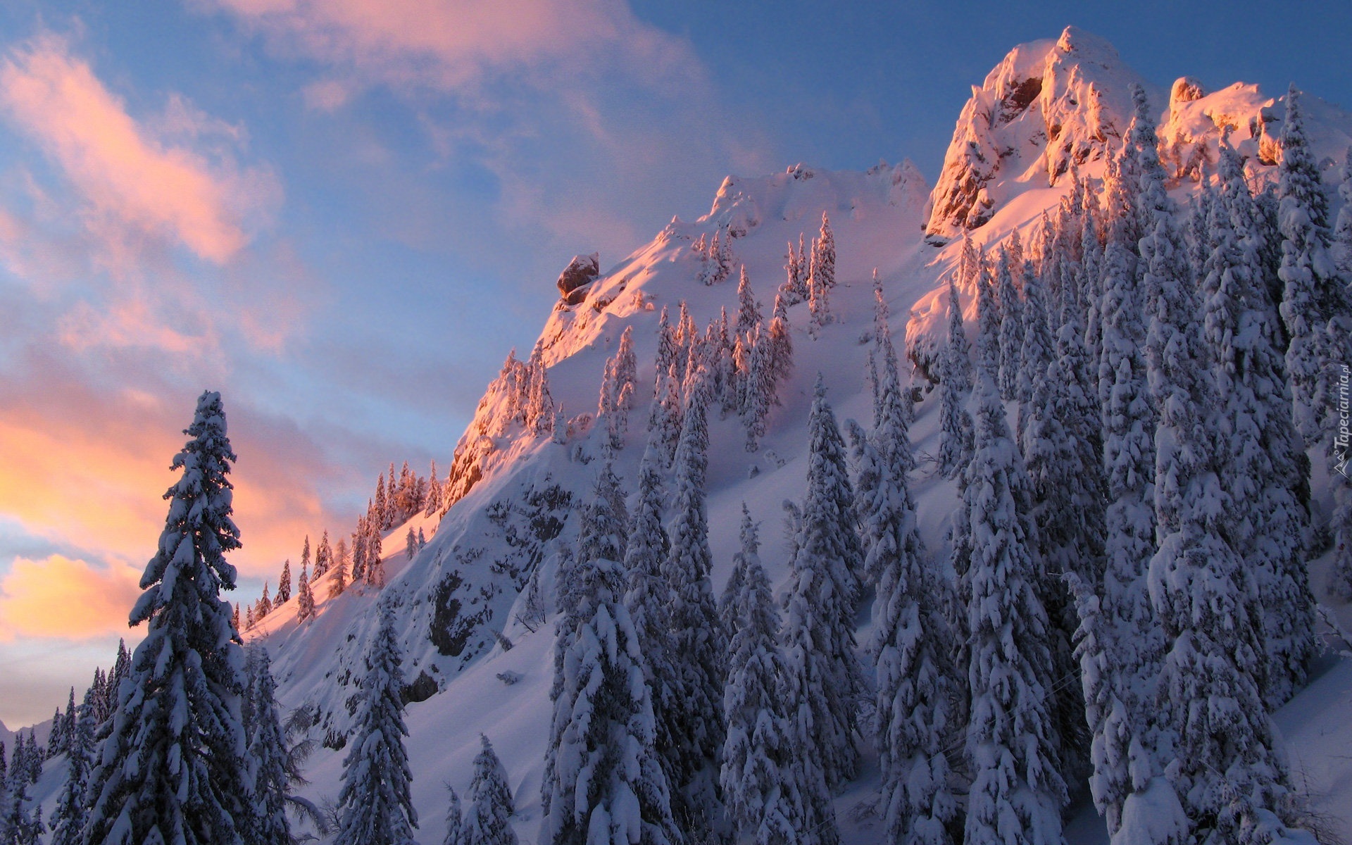 Edytor tapety: Zima, Góry, Ośnieżone, Świerki