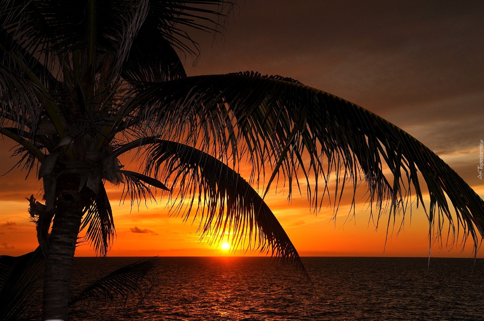Edytor tapety: Palma, Morze, Zachód, Słońca