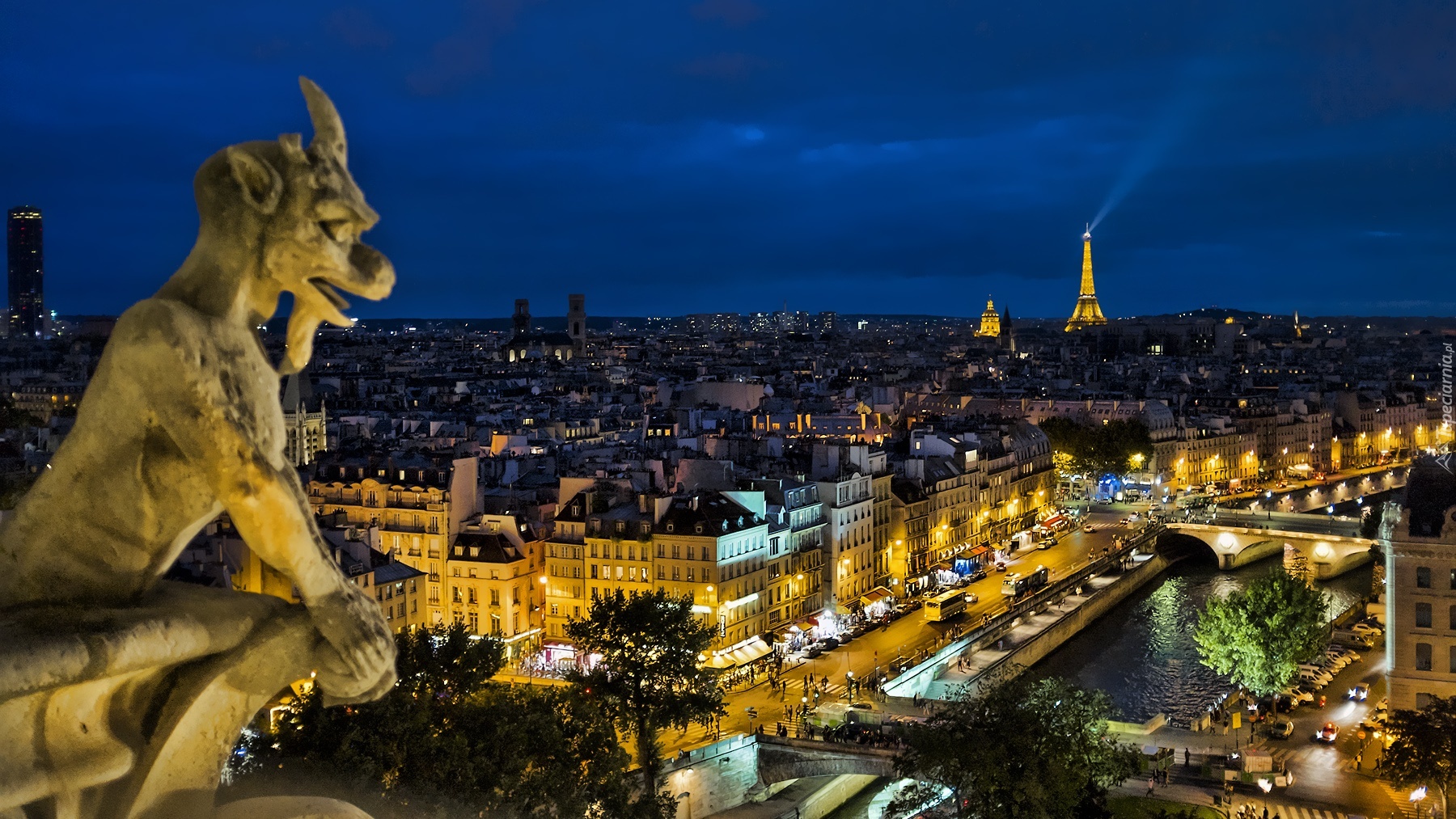 Edytor tapety: Panorama, Paryż, Noc, Posąg