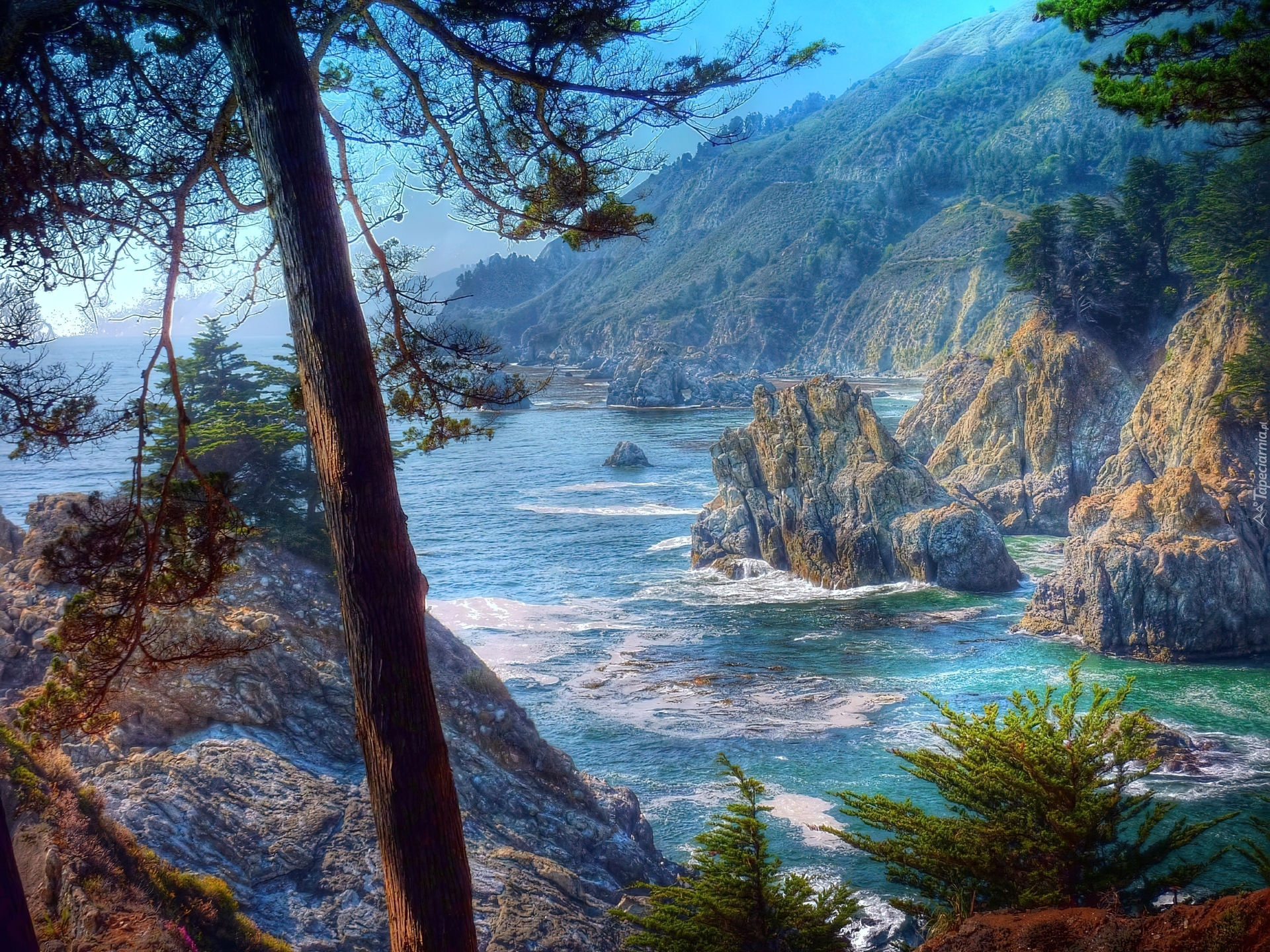 Edytor tapety: Sosna, Skały, Wybrzeże