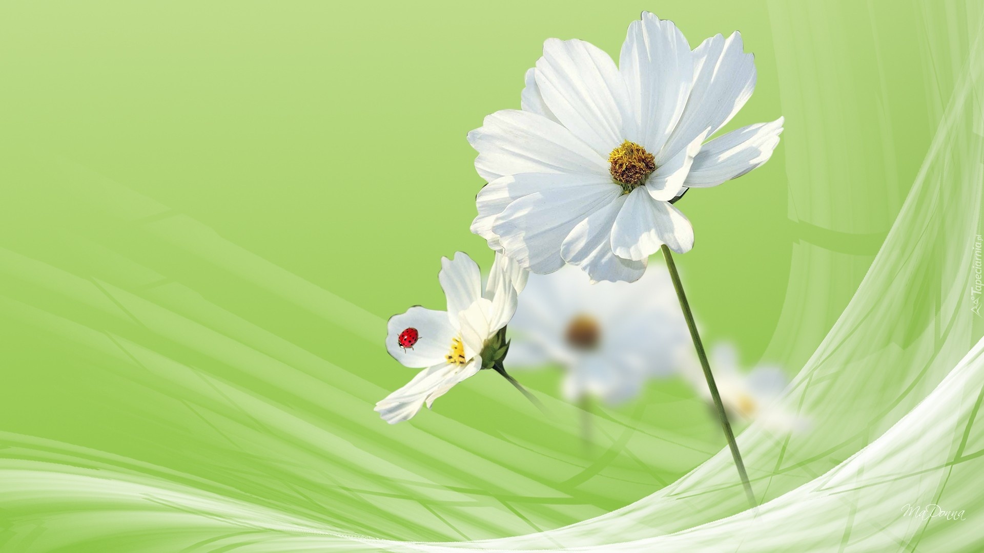 Edytor tapety: Biała, Kosmea, Zielone, Tło