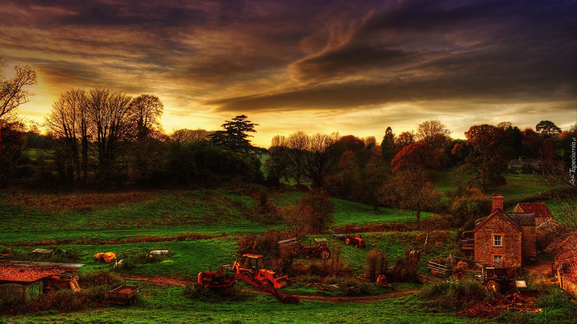 Edytor tapety: Zmierzch, Traktory, Gospodarstwo, Farma
