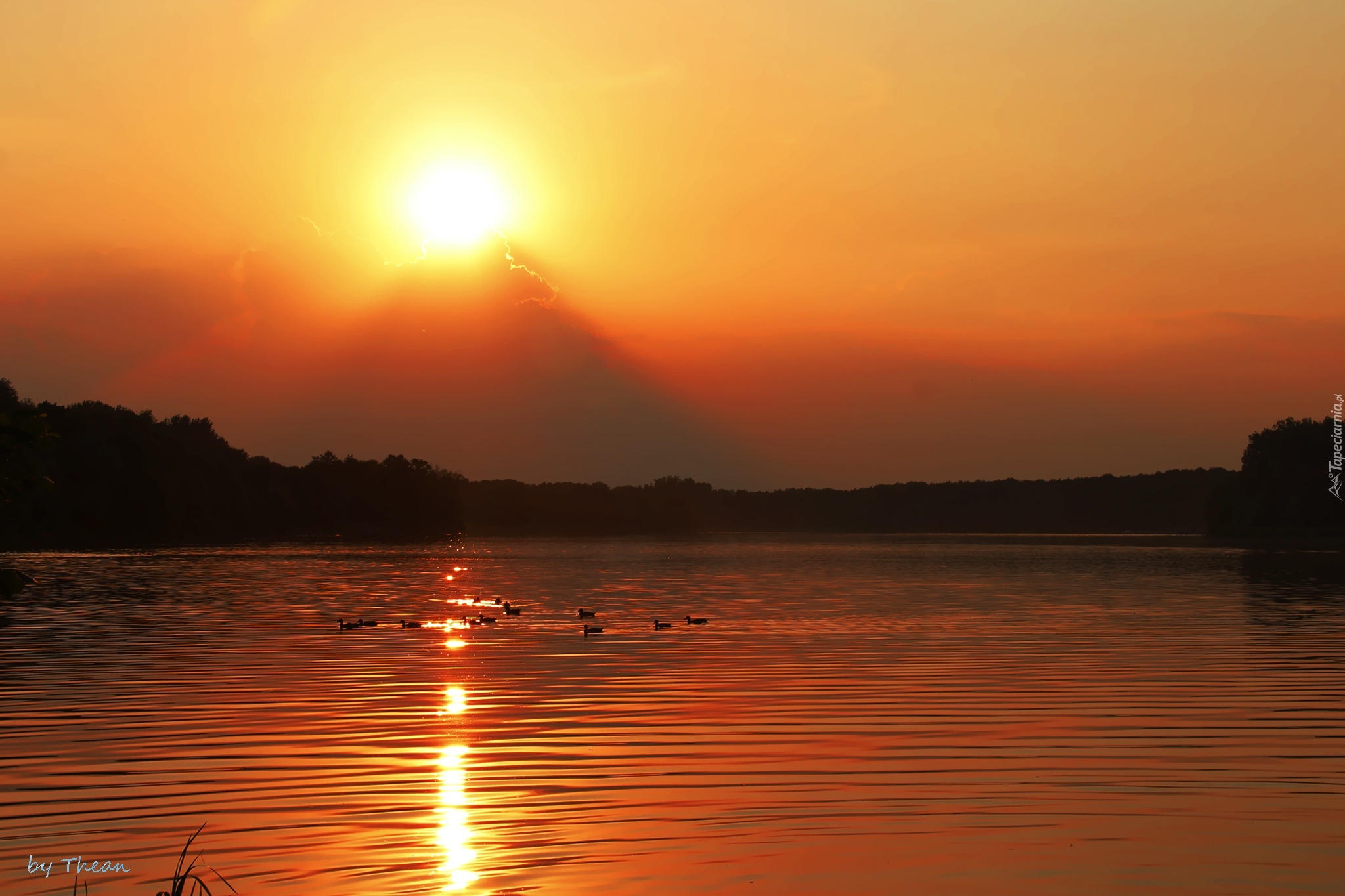 Edytor tapety: Zachód, Słońca, Nad, Jeziorem