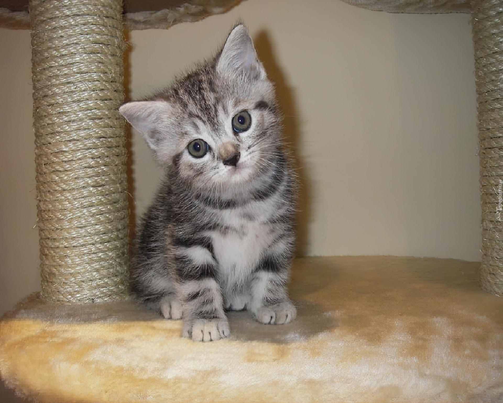 Edytor tapety: Mały, Szary, Kotek, Drapak