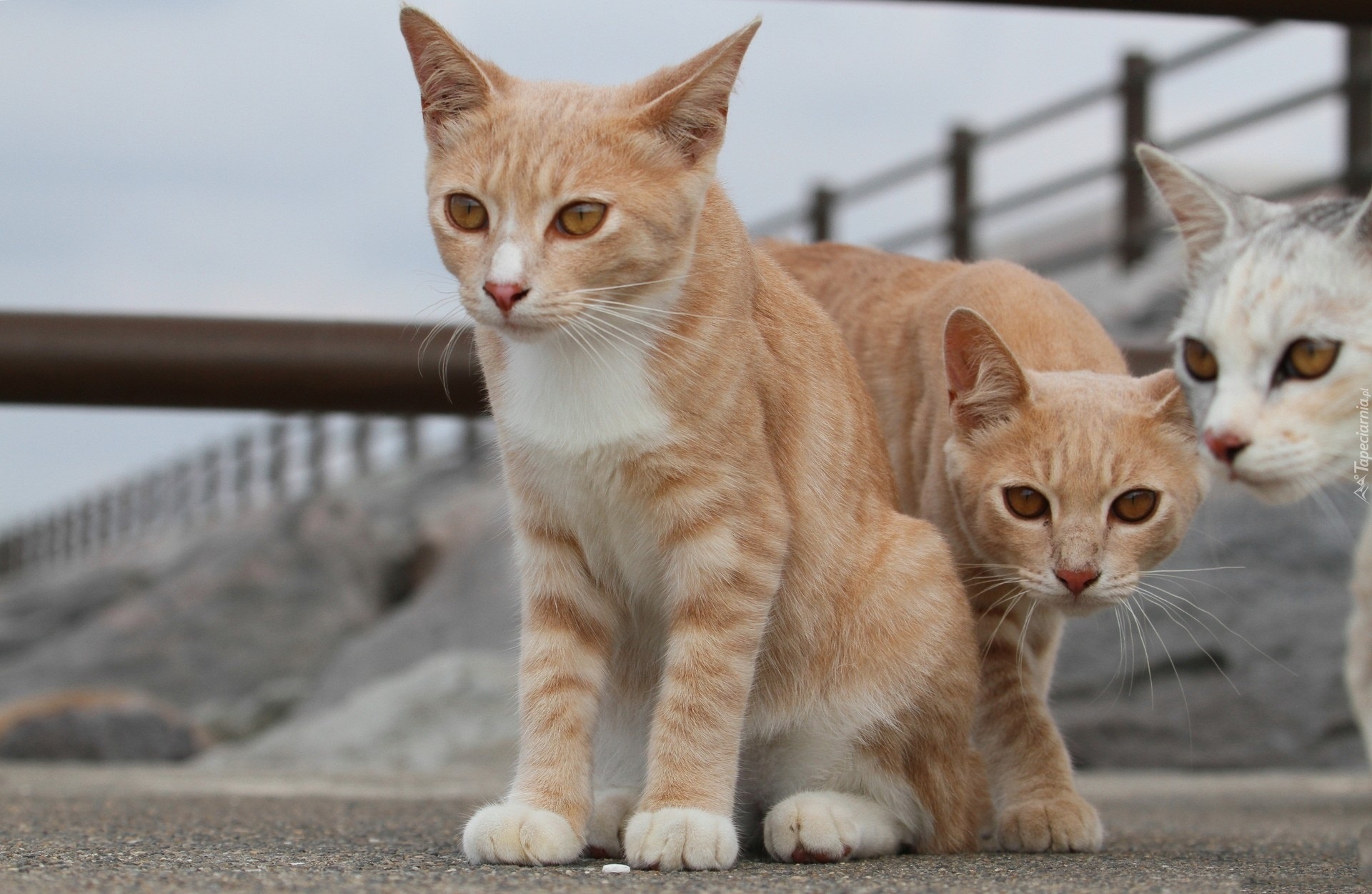 Edytor tapety: Trzy, Koty, Podejrzliwe, Spojrzenie