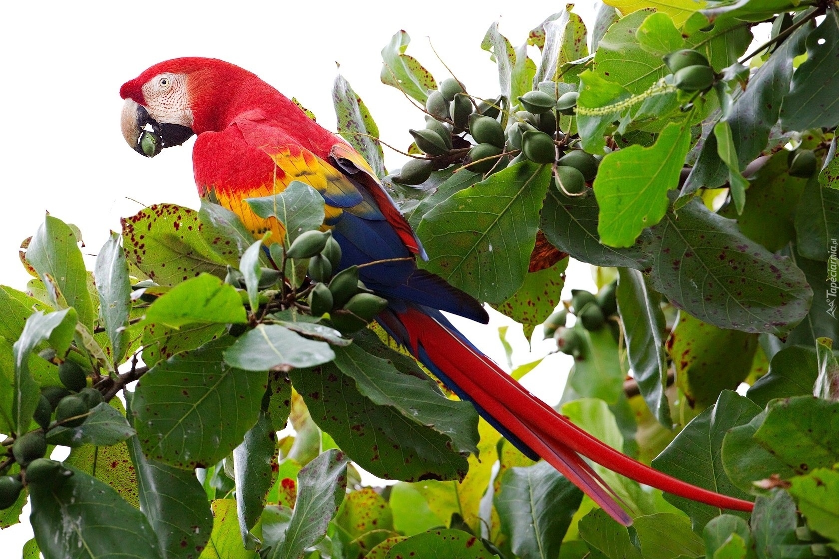 Edytor tapety: Kolorowa, Papuga, Ara, Drzewo