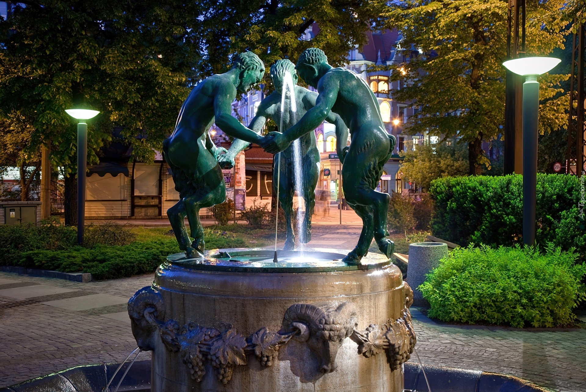 Edytor tapety: Fontanna, Diabełki, Lampy, Gliwice