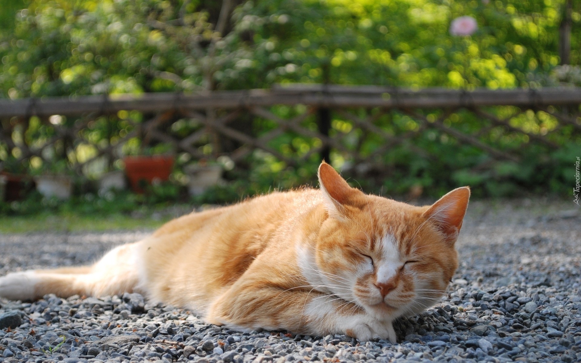Edytor tapety: Śpiący, Rudy, Kot, Kamyczki