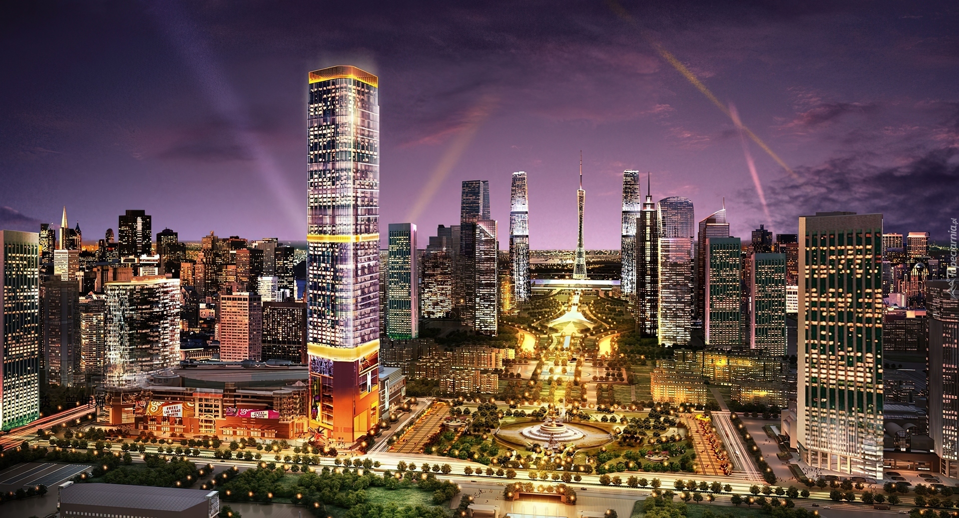 Edytor tapety: Miasto, Komputerowe, Nocą