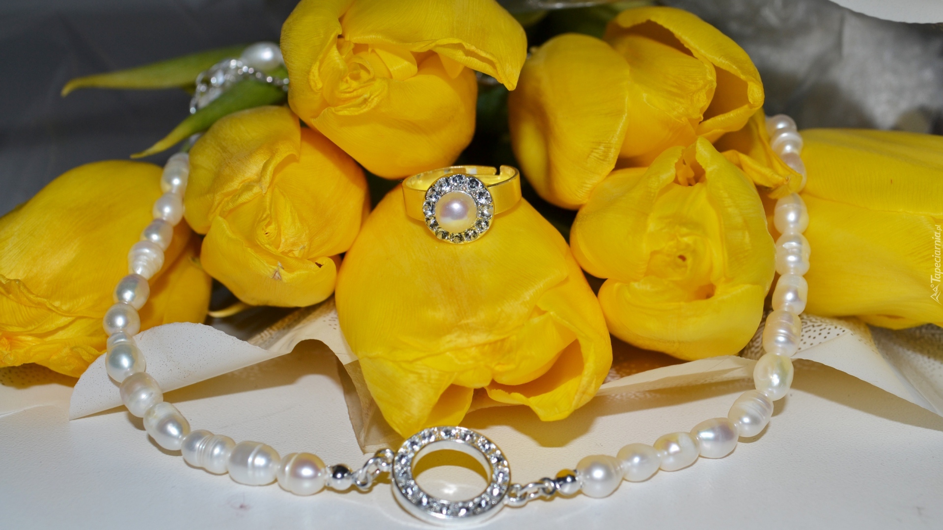 Edytor tapety: Żółte, Tulipany, Perły, Pierścionek