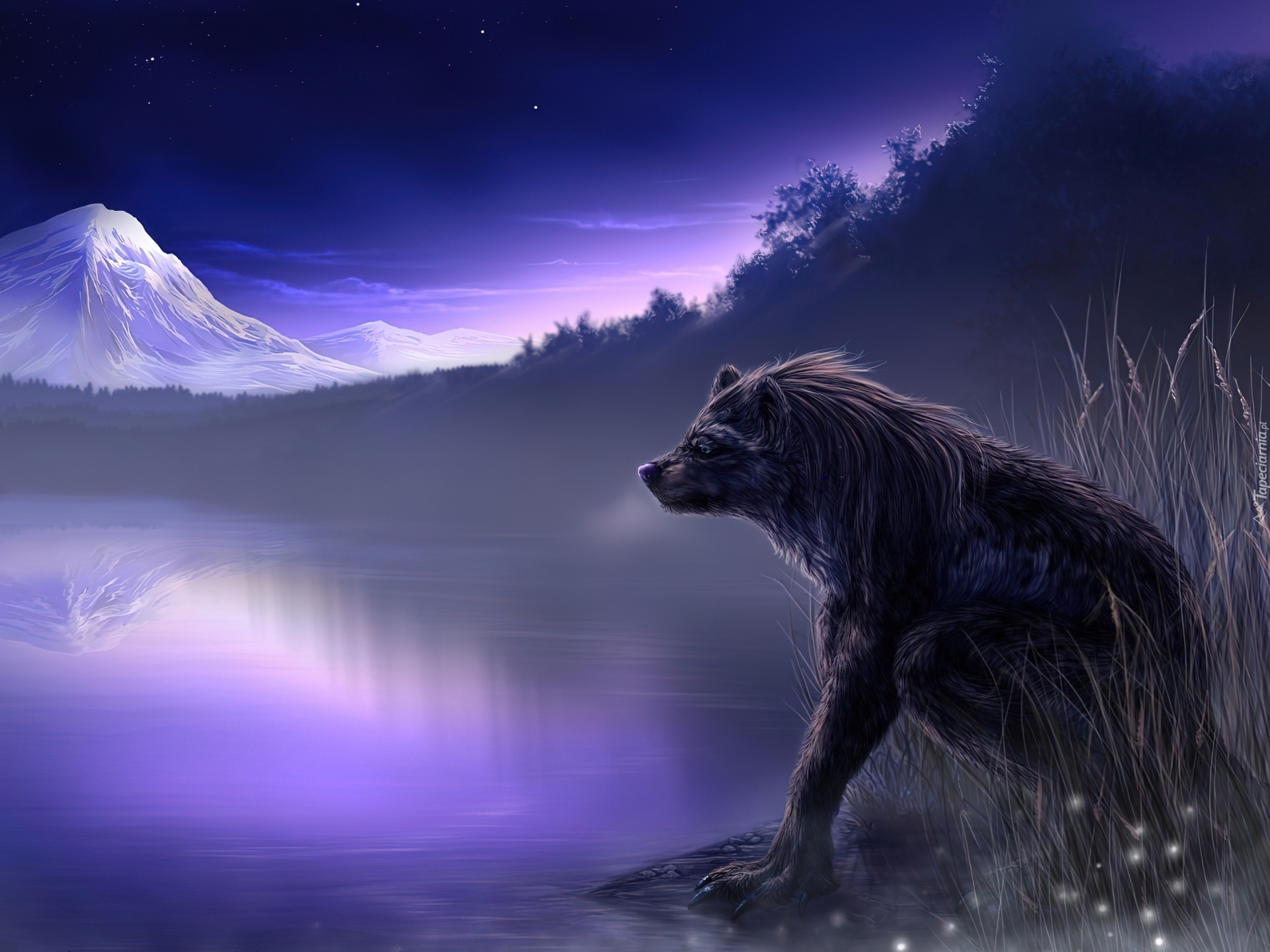 Edytor tapety: Stwór, Woda, Góra, Noc, Fantasy