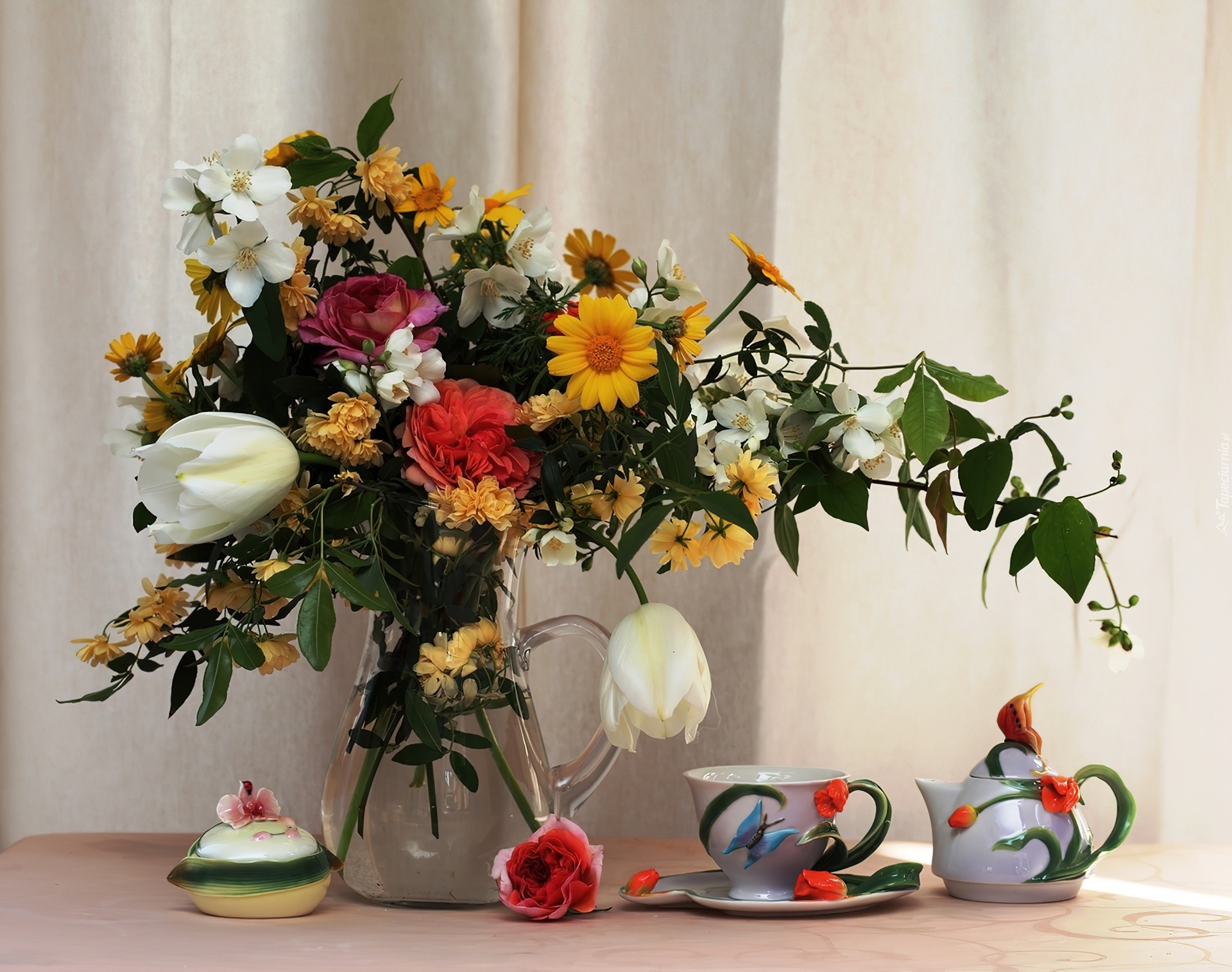 Edytor tapety: Kwiaty, Bukiet, Wazon, Filiżanka
