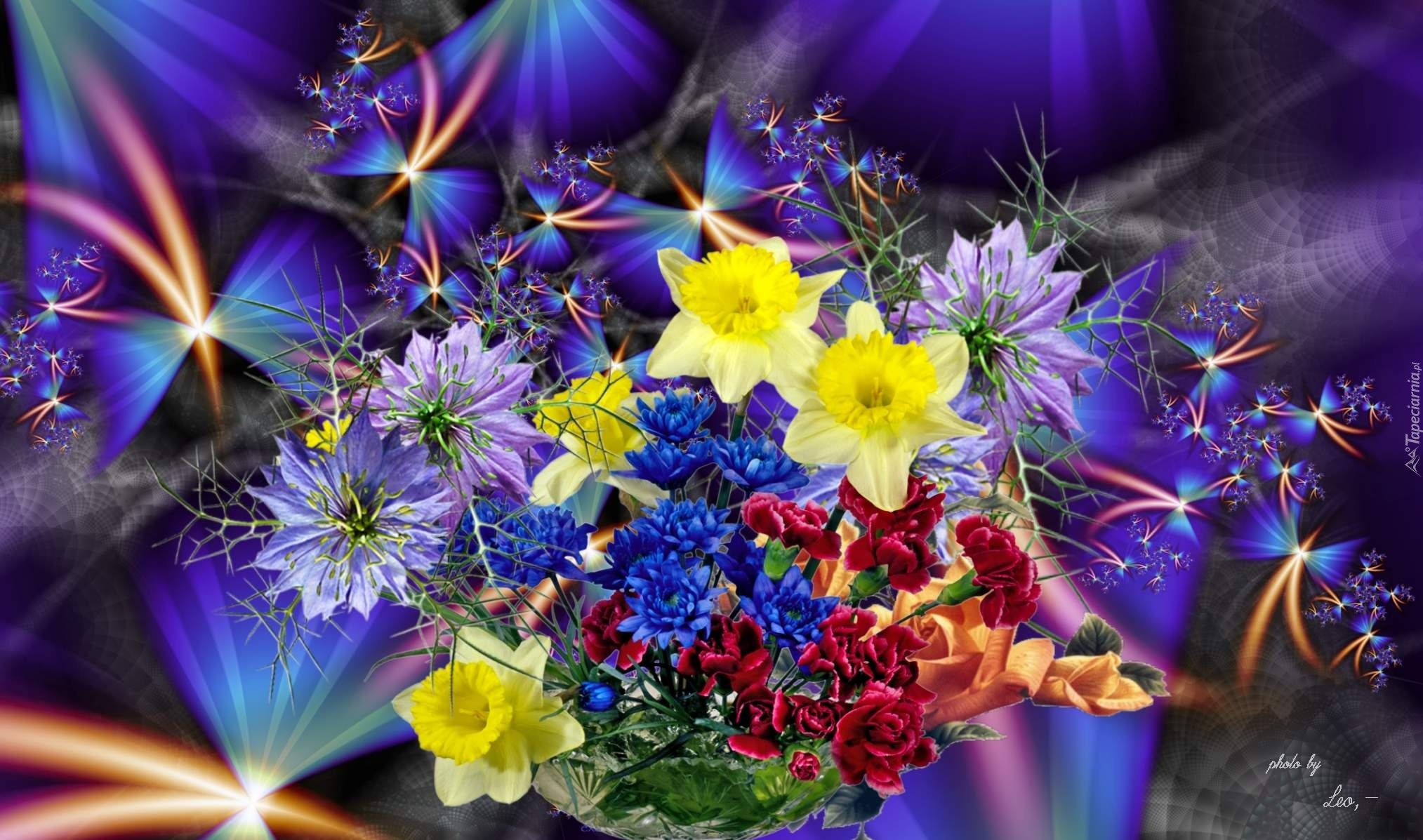 Edytor tapety: Bukiet, Kwiaty, Kolor, Fiolet