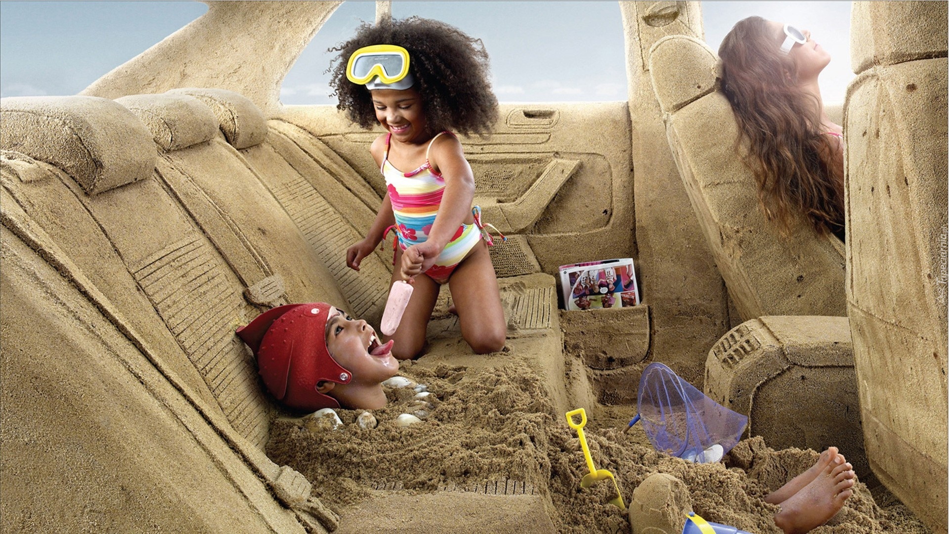 Edytor tapety: Samochód, Z, Piasku, Dzieciaki