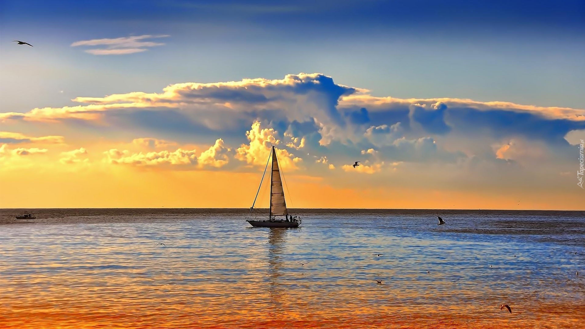 Edytor tapety: Morze, Jacht, Zachód, Słońca
