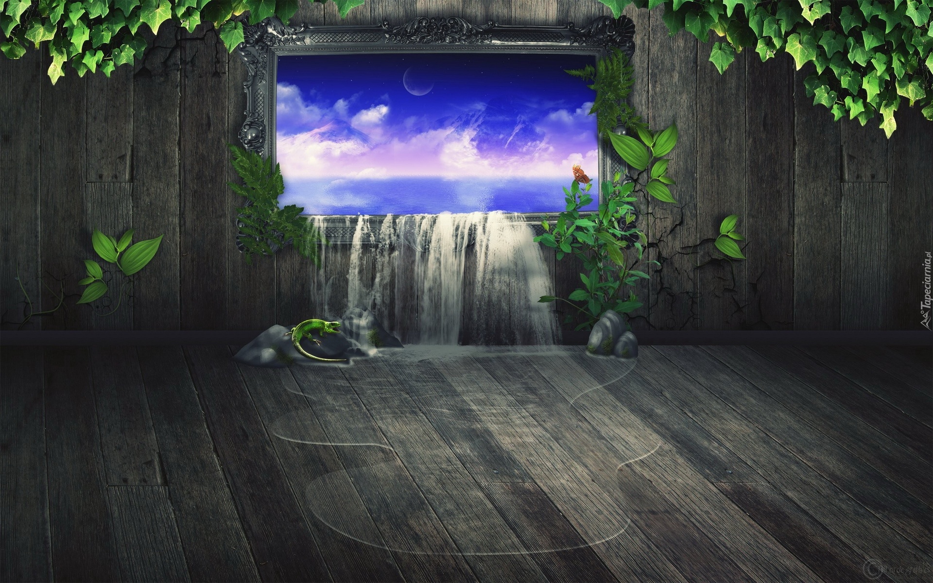 Edytor tapety: Pokój, Okno, Wlewająca, Woda, Jaszczur