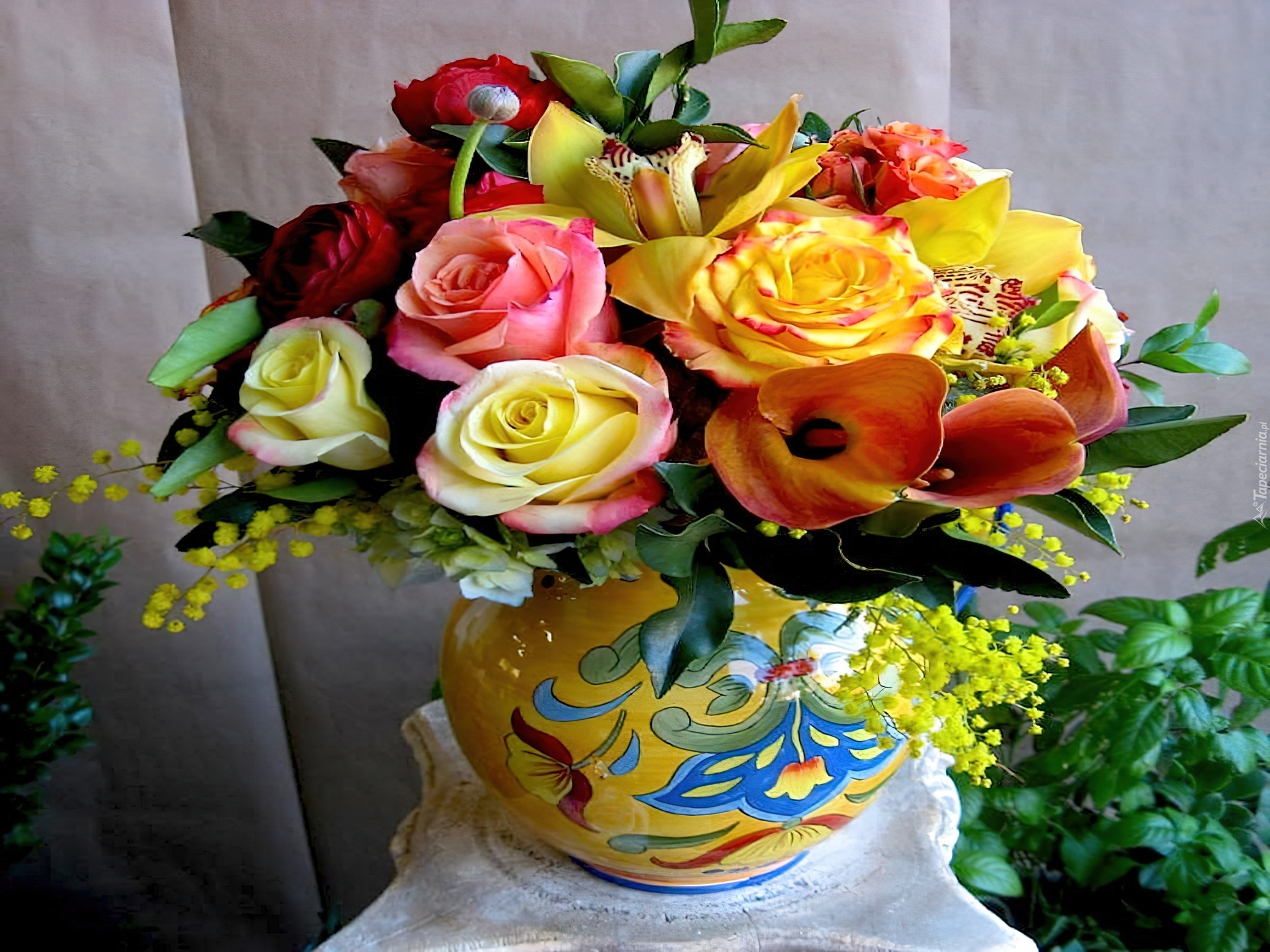 Edytor tapety: Bukiet, Kwiatów, Kolorowy, Wazon