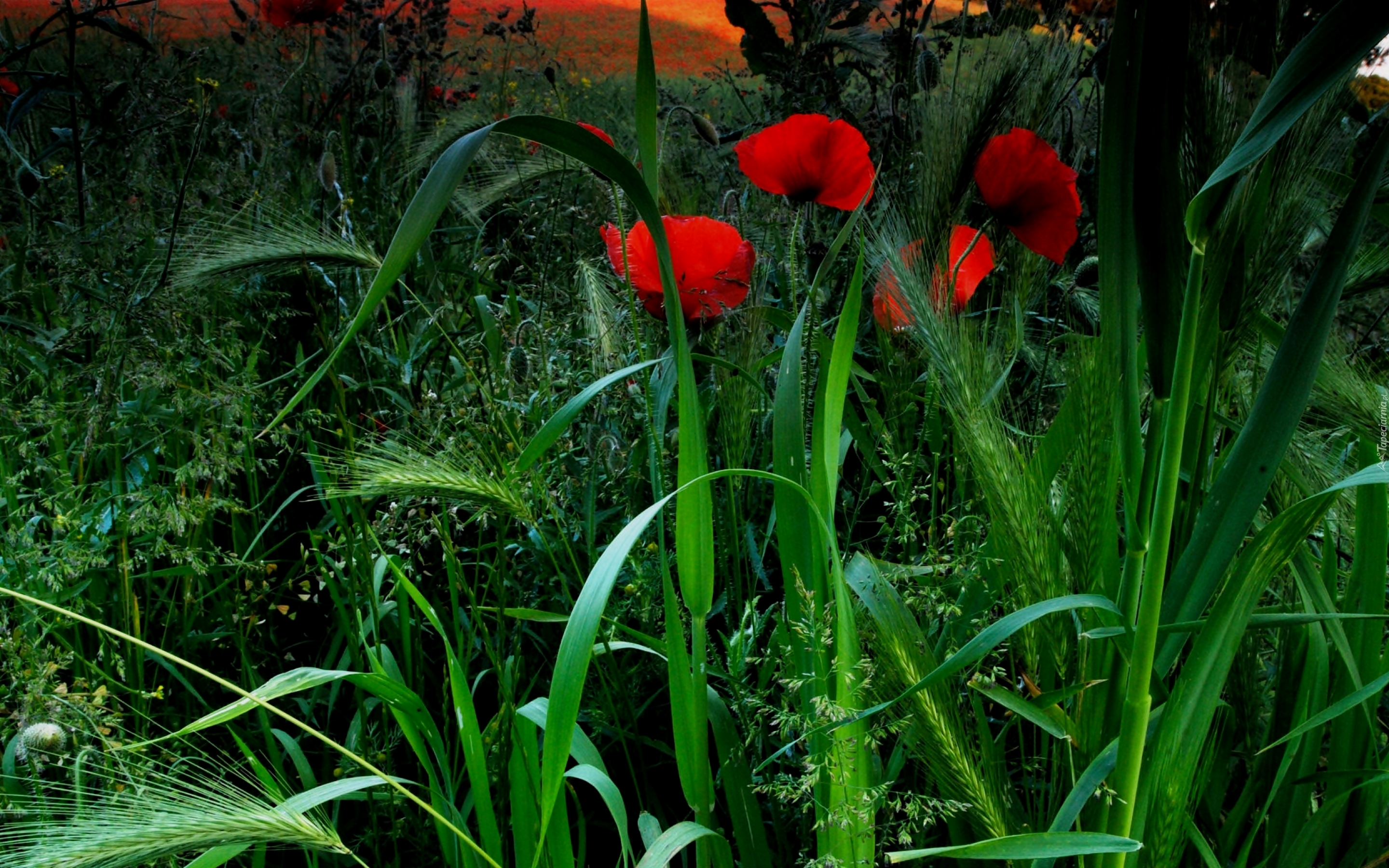 Edytor tapety: Czerwone, Maki, Kłosy, Zieleń
