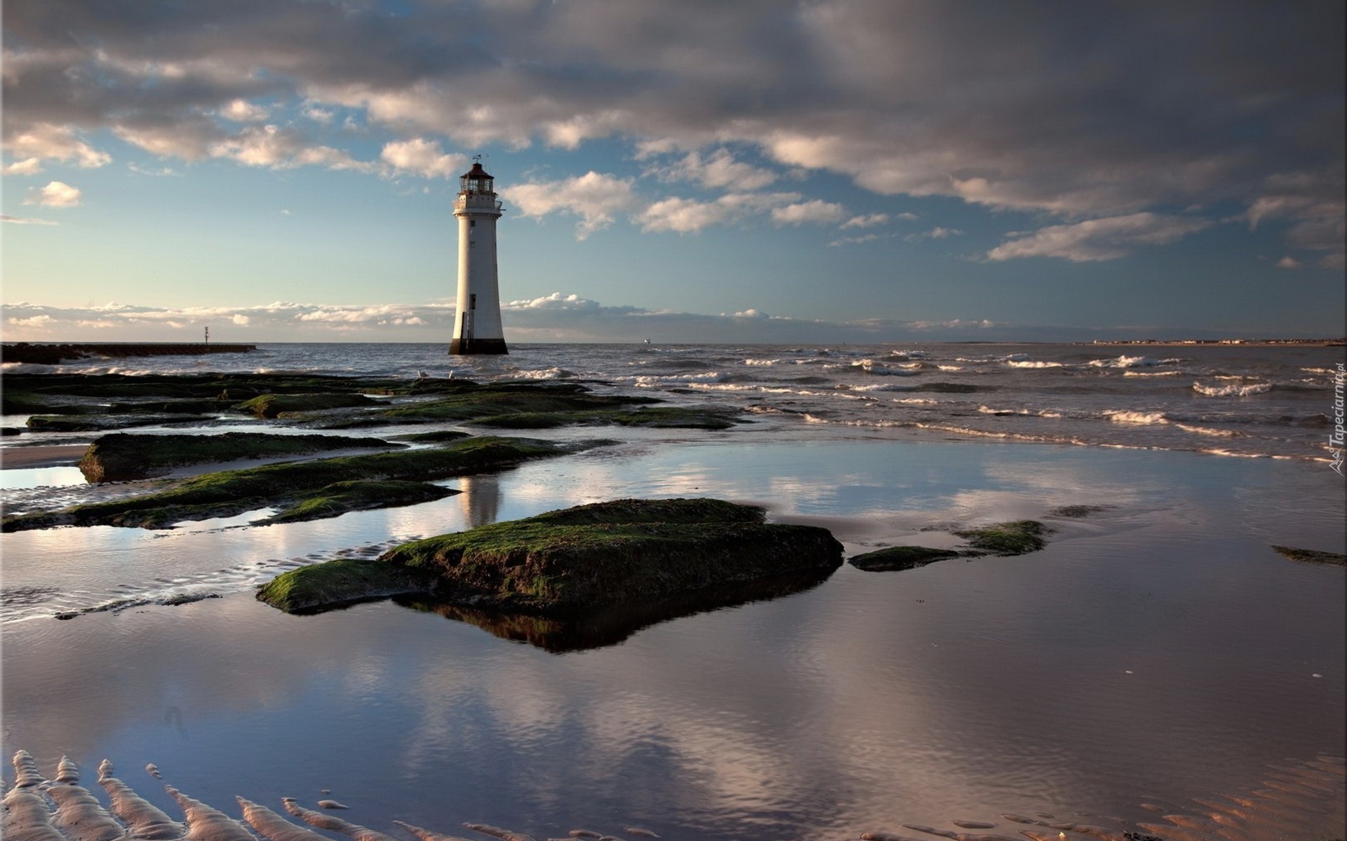 Edytor tapety: Latarnia, Morska, Morze, Brzeg, Chmury