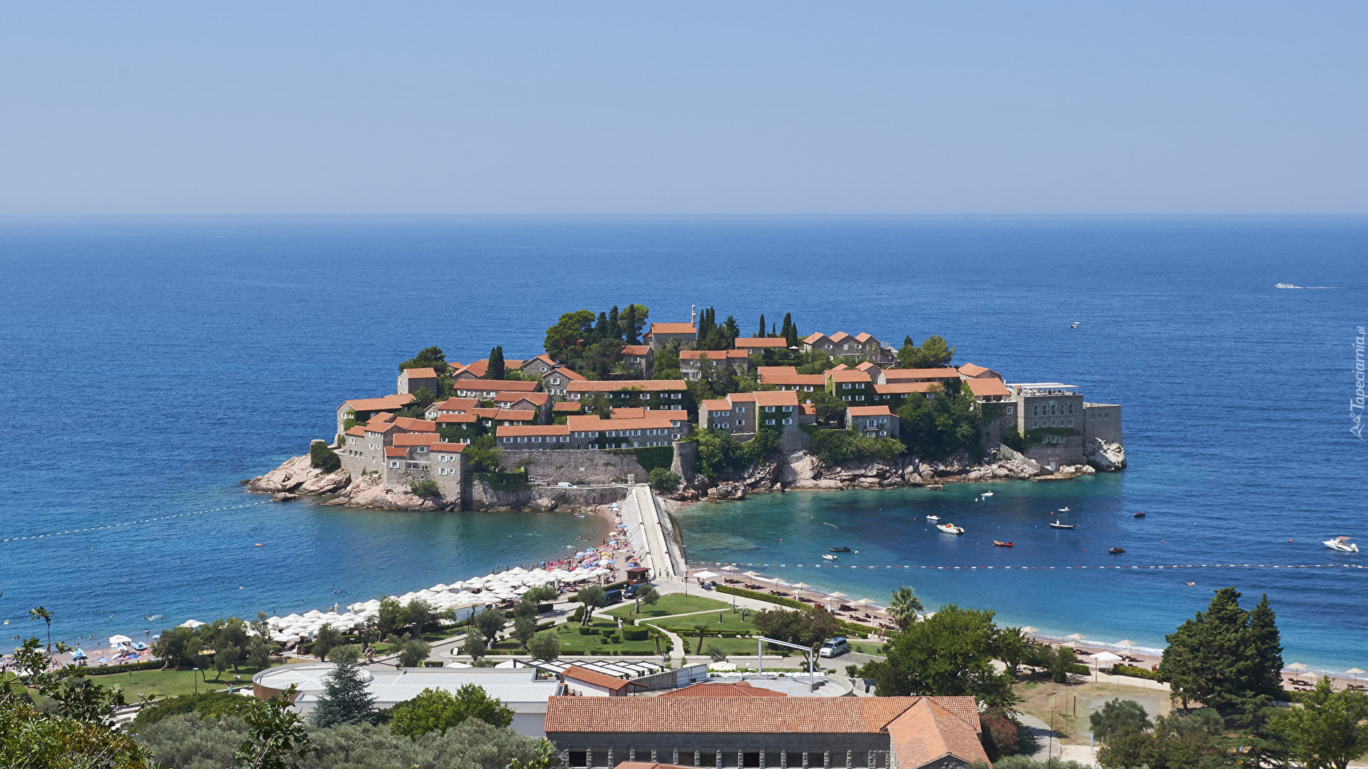 Edytor tapety: Sveti Stefan, Domy, Morze, Gmina Budva, Czarnogóra