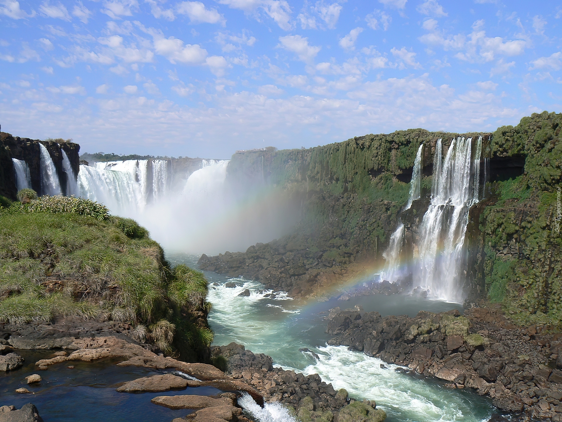 Edytor tapety: Wodospad, Woda, Kamienie, Tęcza