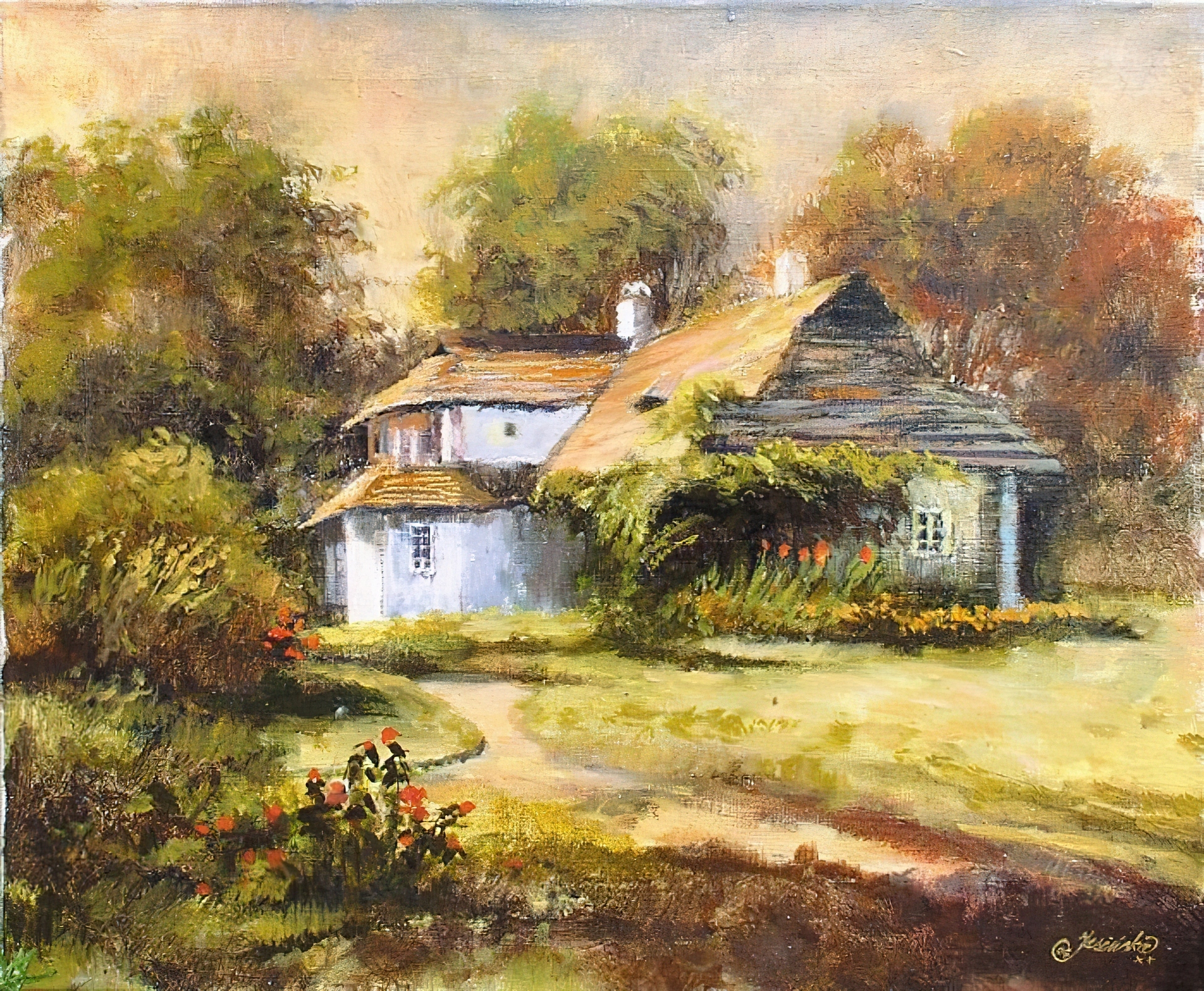 Edytor tapety: Domek, Wieś, Lato, Malarstwo, Obraz, Krystyna Jasińska