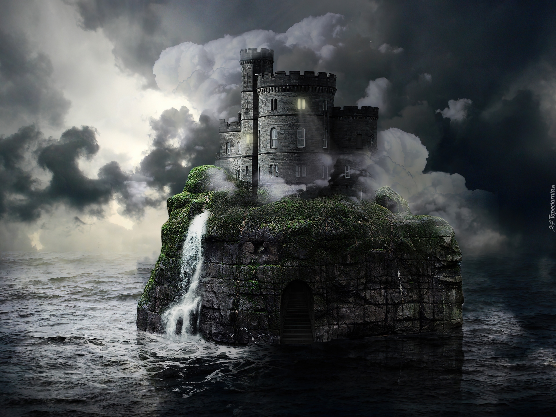 Edytor tapety: Zamek, Baszta, Skała, Morze