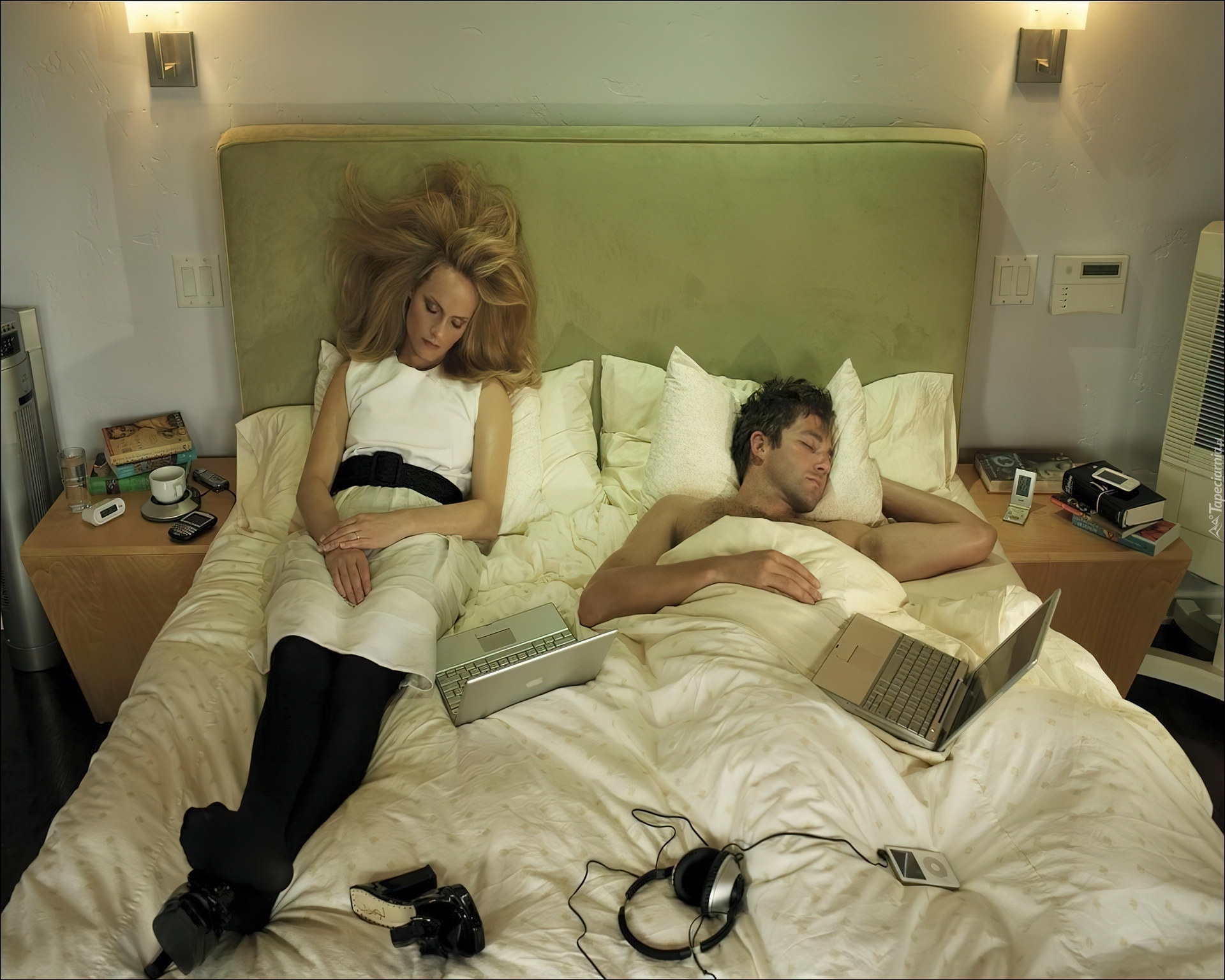 Edytor tapety: On, Ona, Komputery, Łoże, Sen