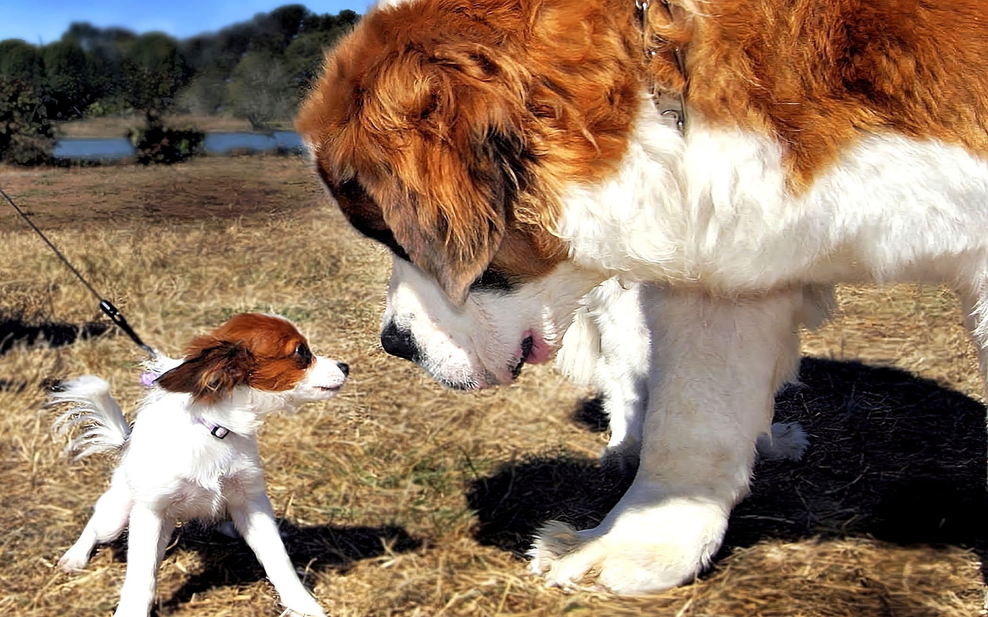 Edytor tapety: Bernardyn, Mały, Piesek, Spotkanie