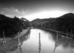 Edytor tapety: Rzeka, Drzewa, Niebo, Zachód, Słońca