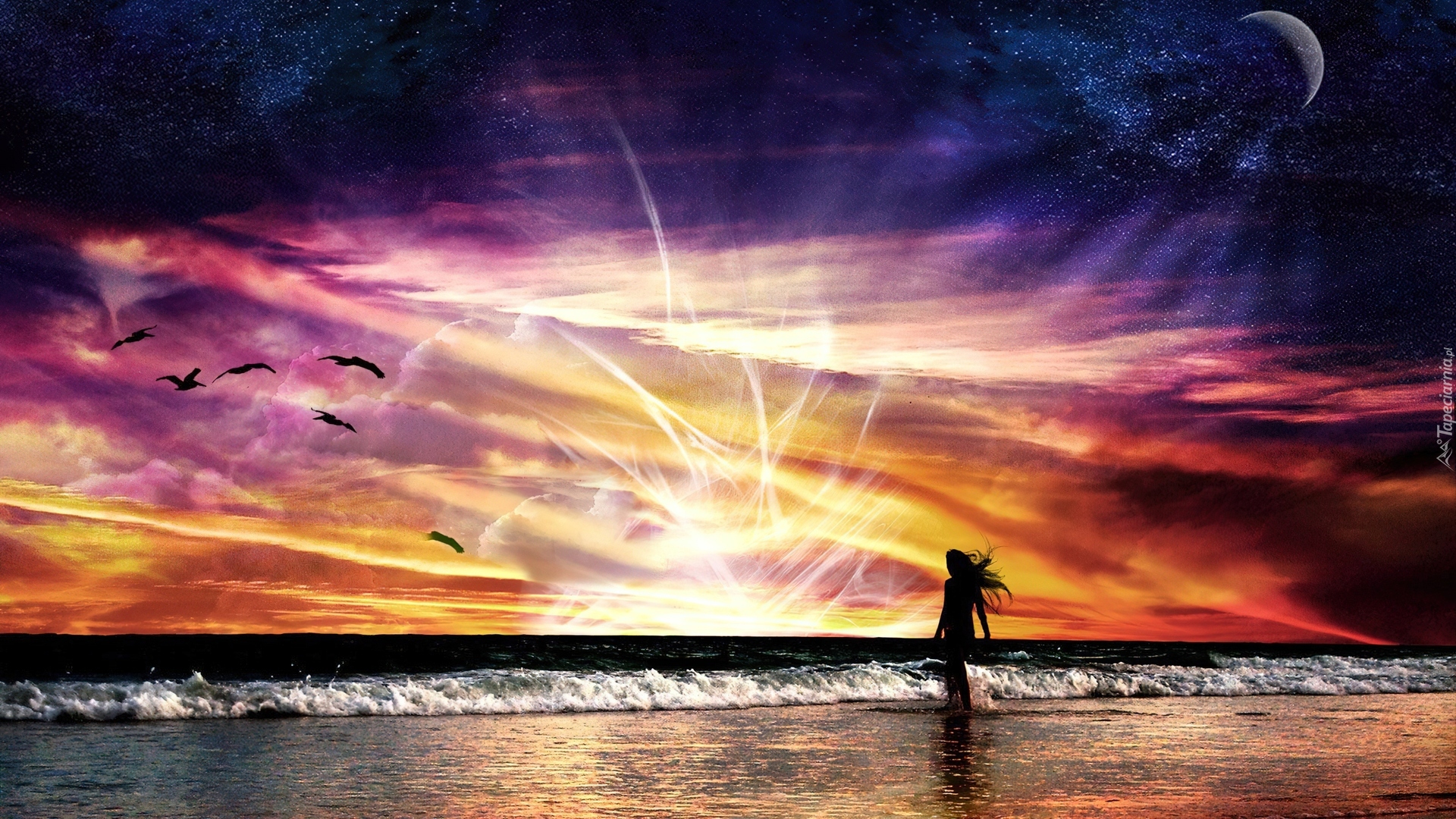 Edytor tapety: Morze, Fale, Dziewczyna