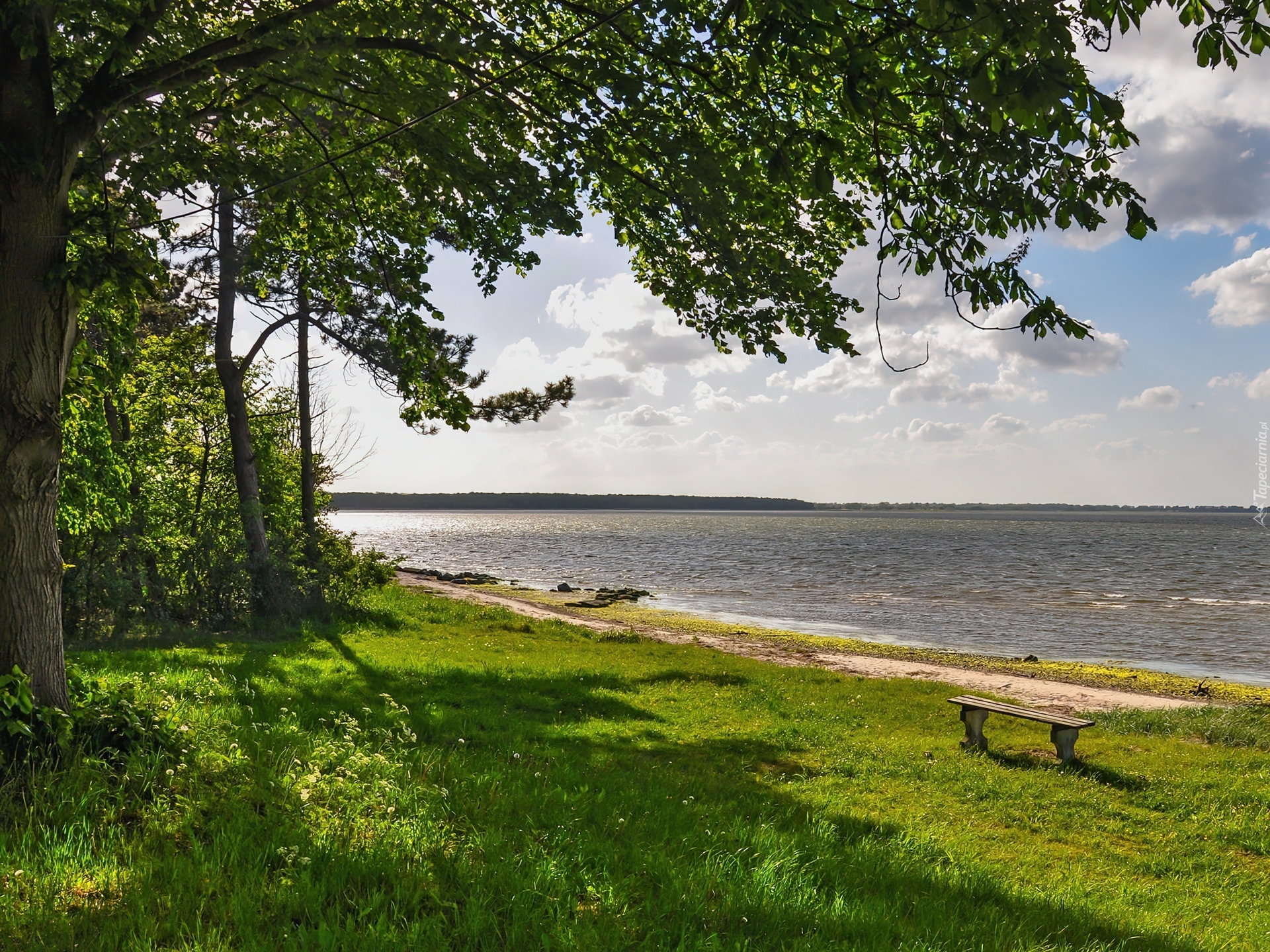 Edytor tapety: Jezioro, Ławka, Drzewo, Zieleń
