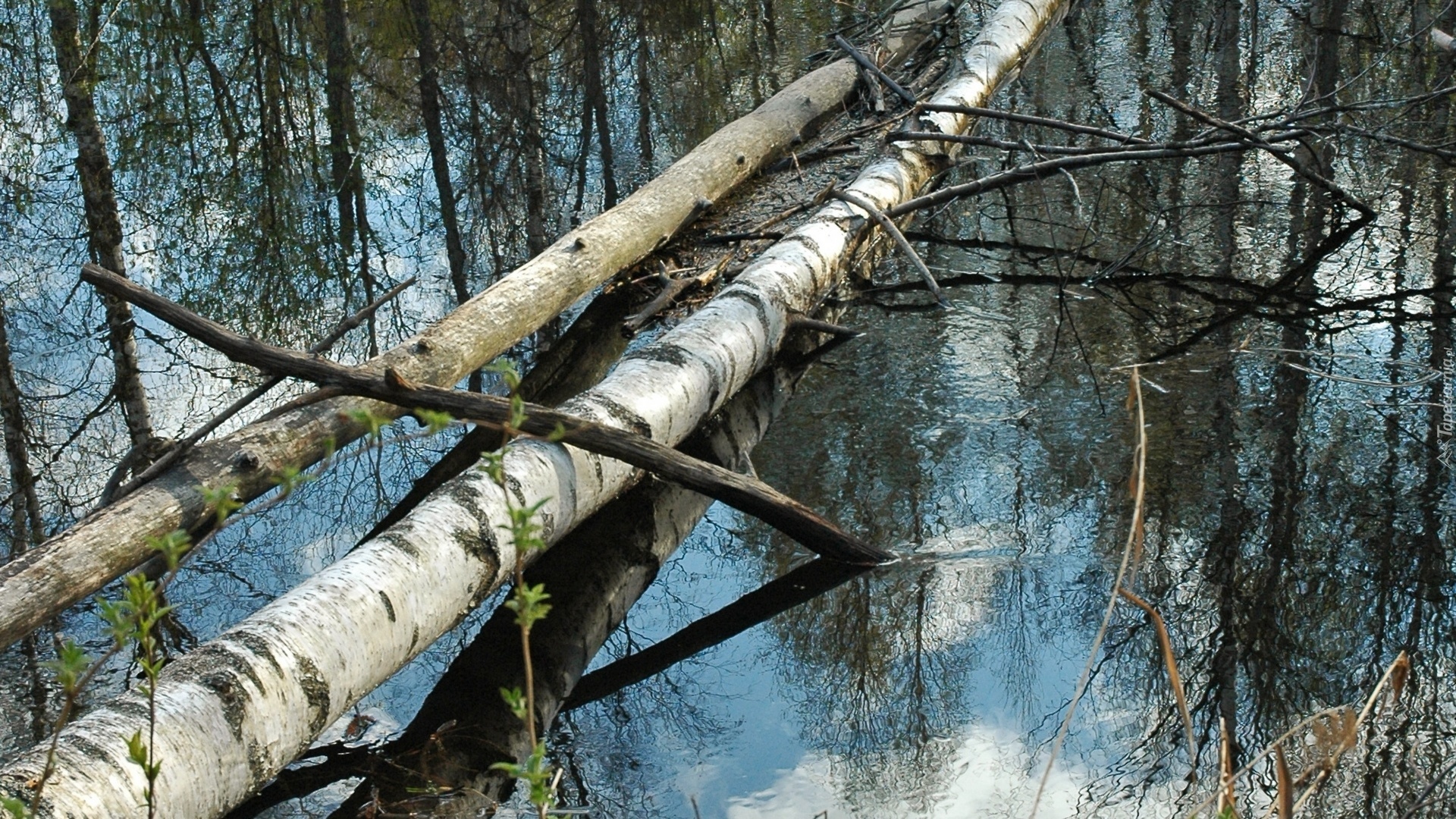 Edytor tapety: Woda, Powalone, Drzewa, Brzozy