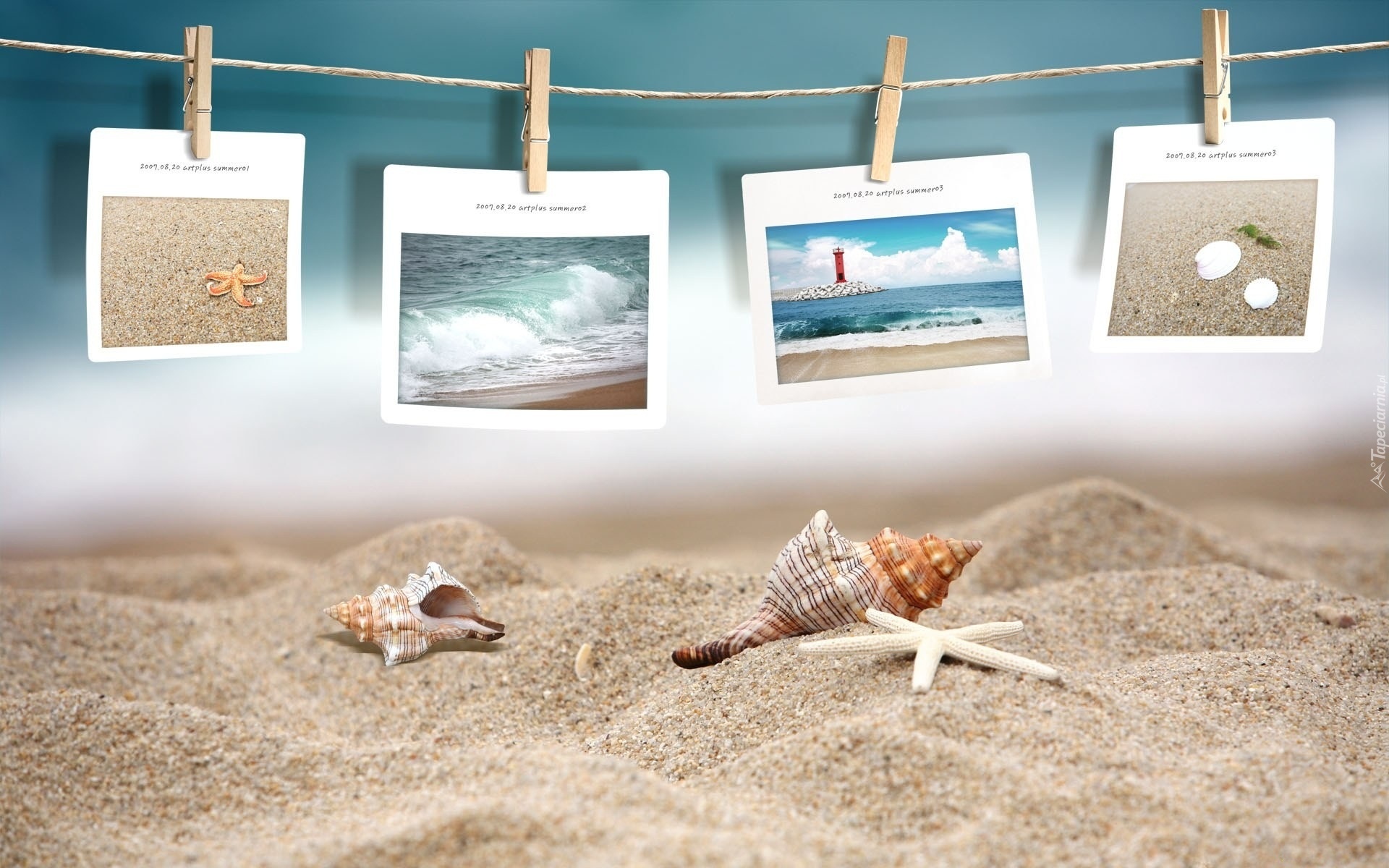 Edytor tapety: Plaża, Muszelki, Piasek, Widokówki