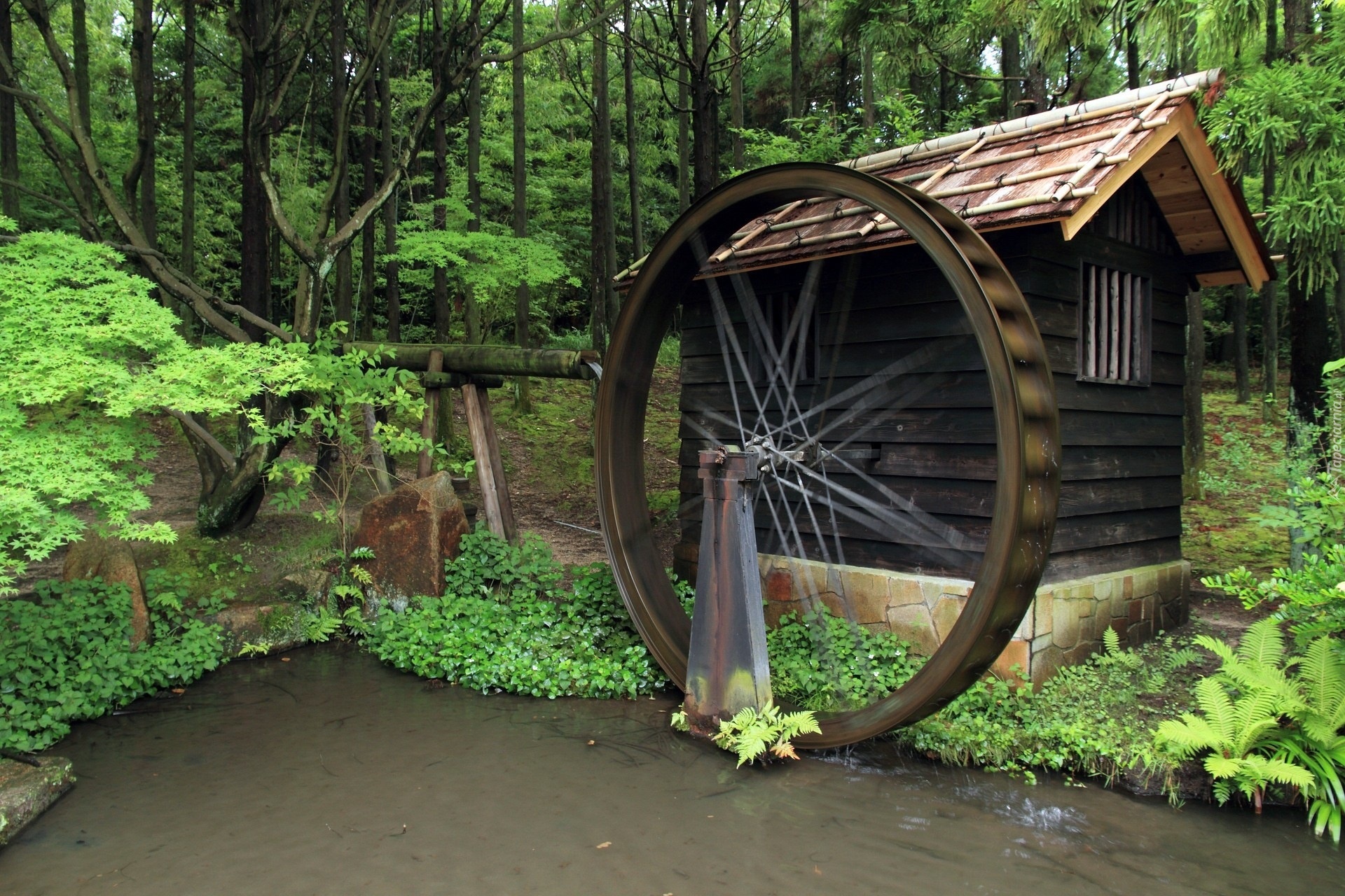 Edytor tapety: Las, Młyn, Woda