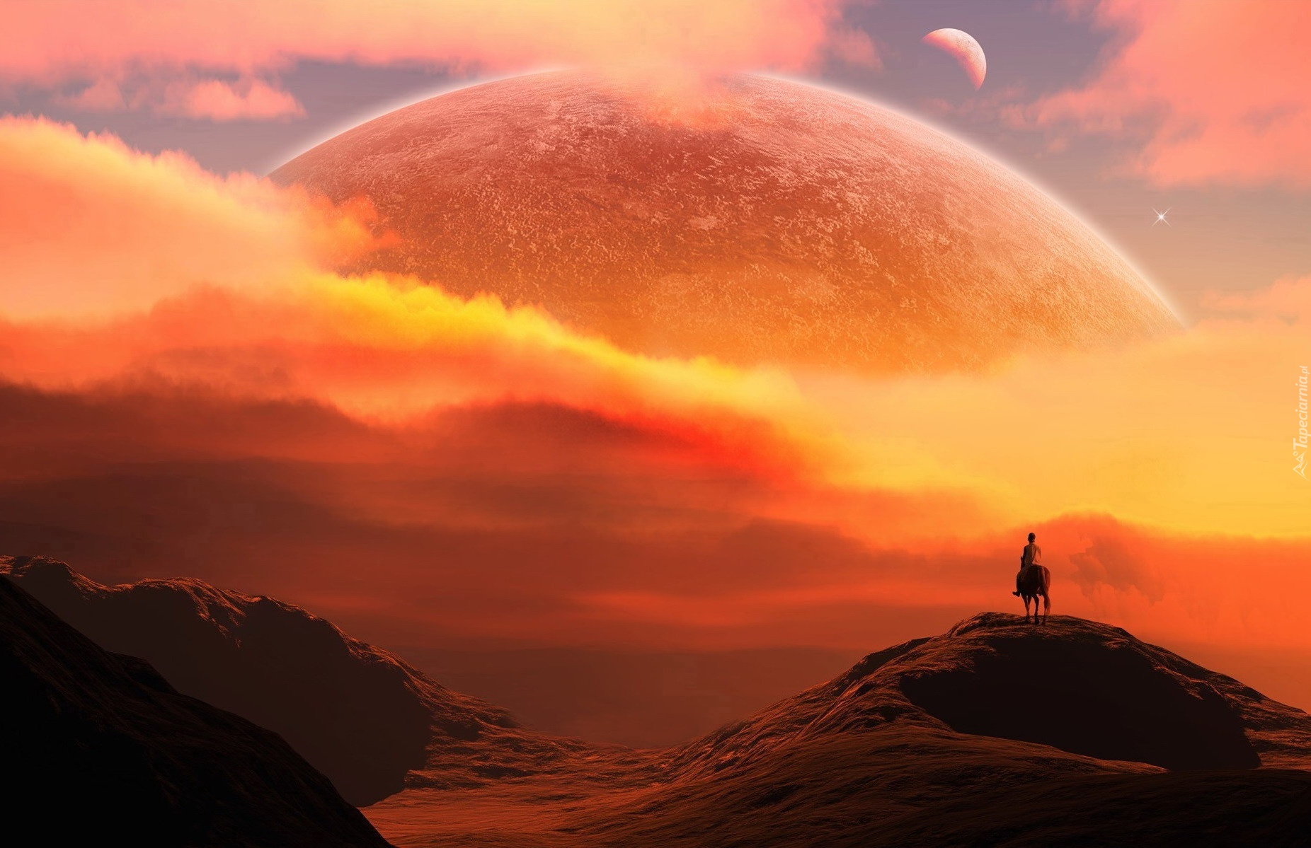 Edytor tapety: Kosmos, Ziemia, Księżyc, Człowiek, Koń, Zachód