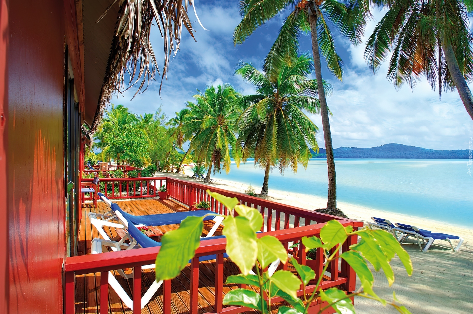 Edytor tapety: Aitutaki, Islandia, Taras, Palmy
