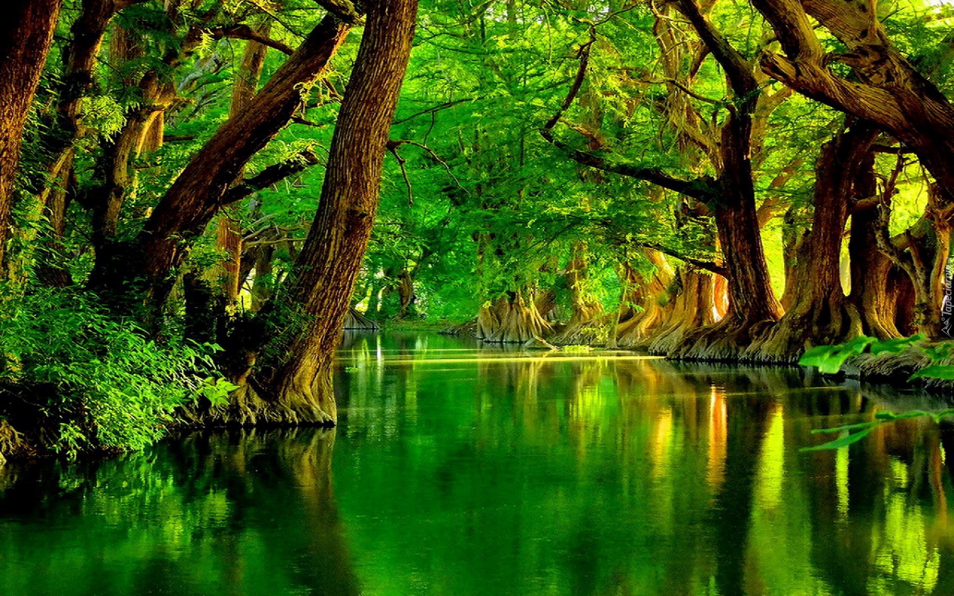 Edytor tapety: Rzeka, Drzewa, Zieleń