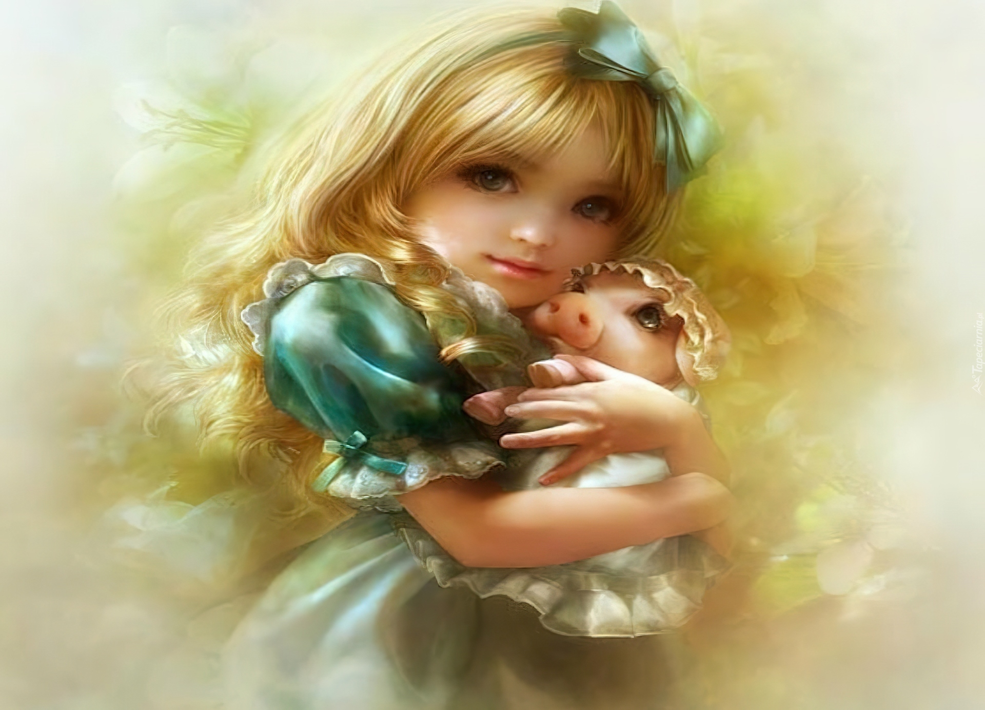 Edytor tapety: Dziewczynka, Prosiaczek