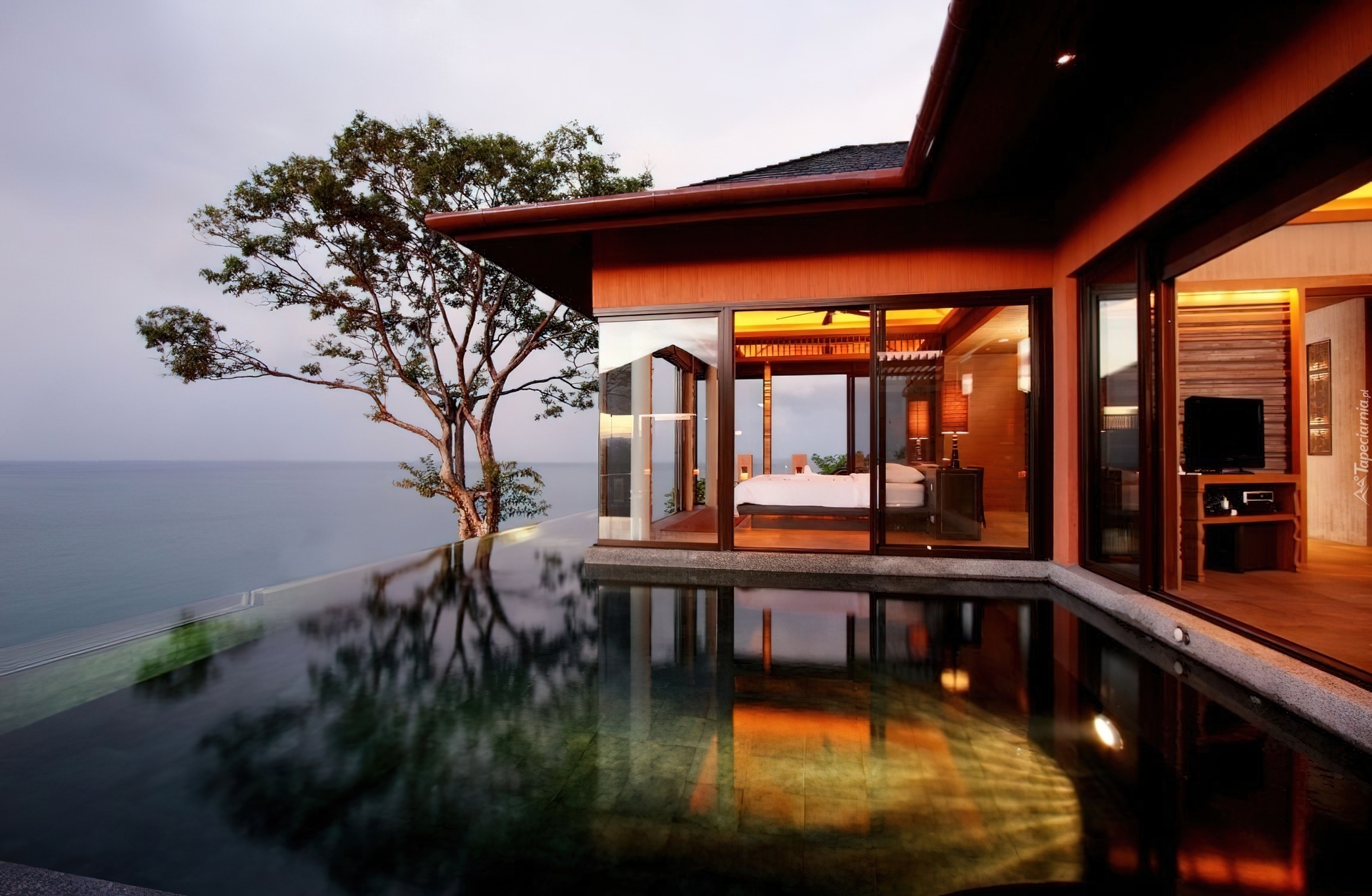 Edytor tapety: Willa, Basen, Morze, Drzewo