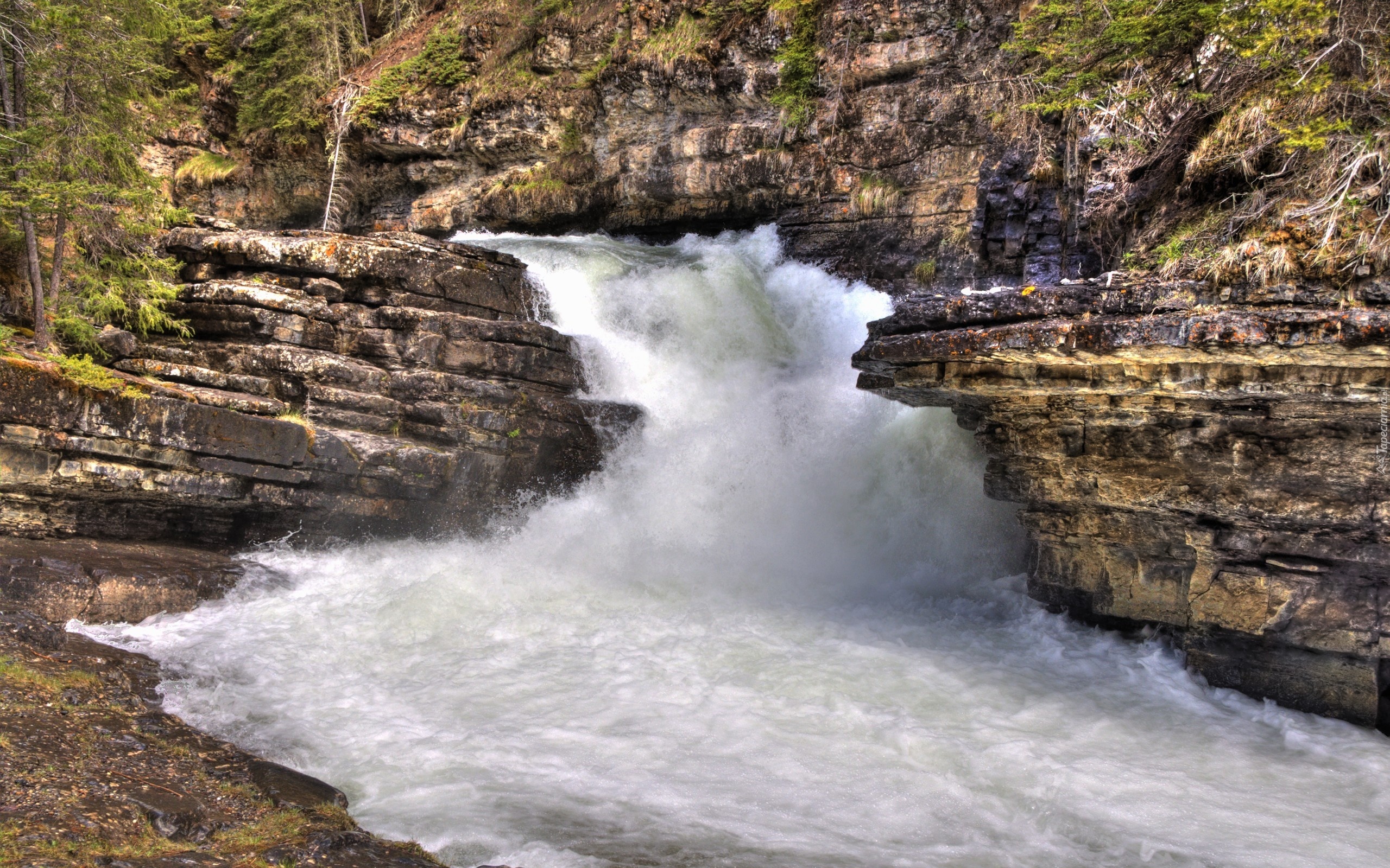 Edytor tapety: Rwący, Potok, Skały, Drzewa
