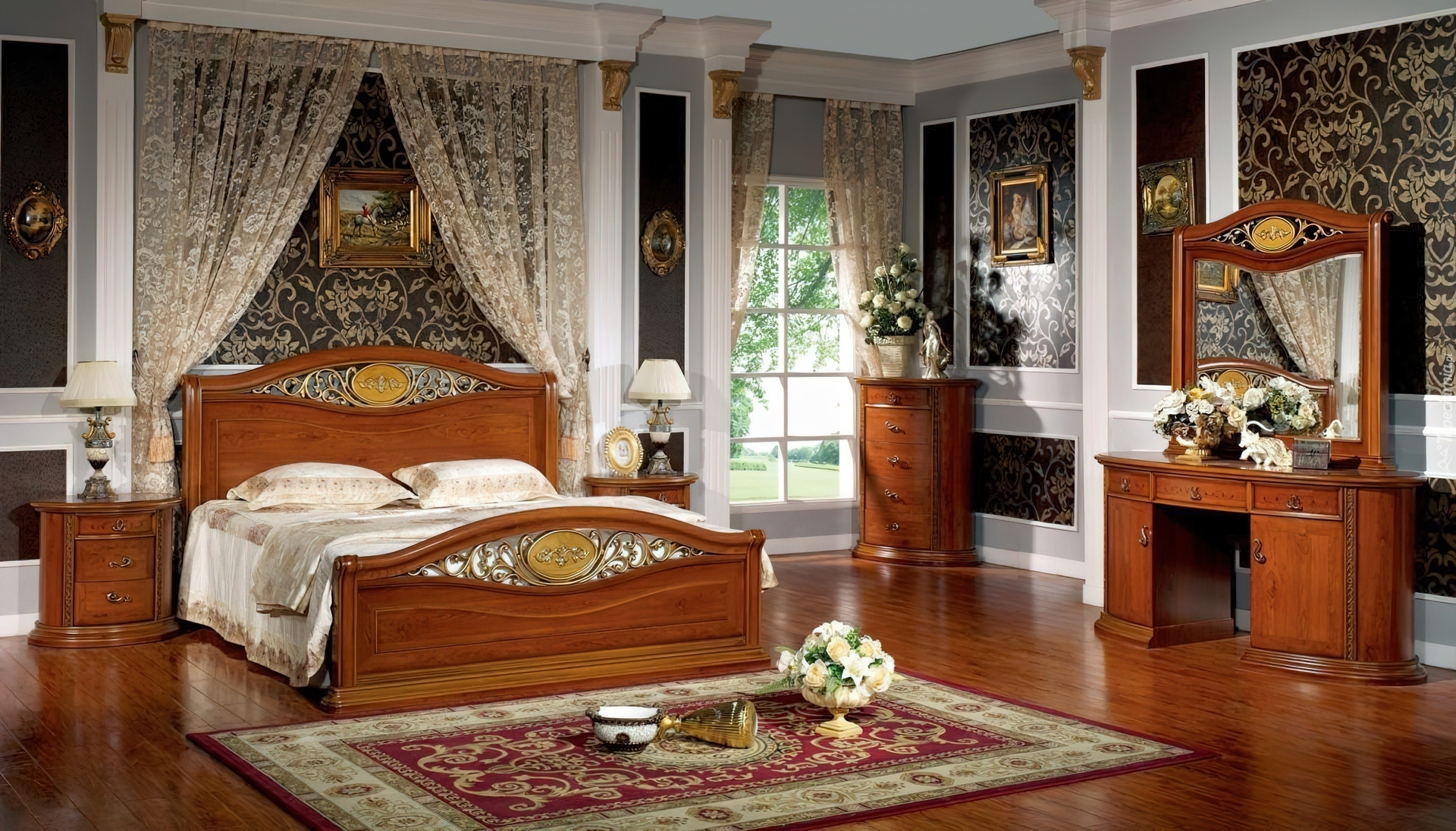 Edytor tapety: Sypialnia, Łoże, Dywanik, Bukiety, Kwiatów