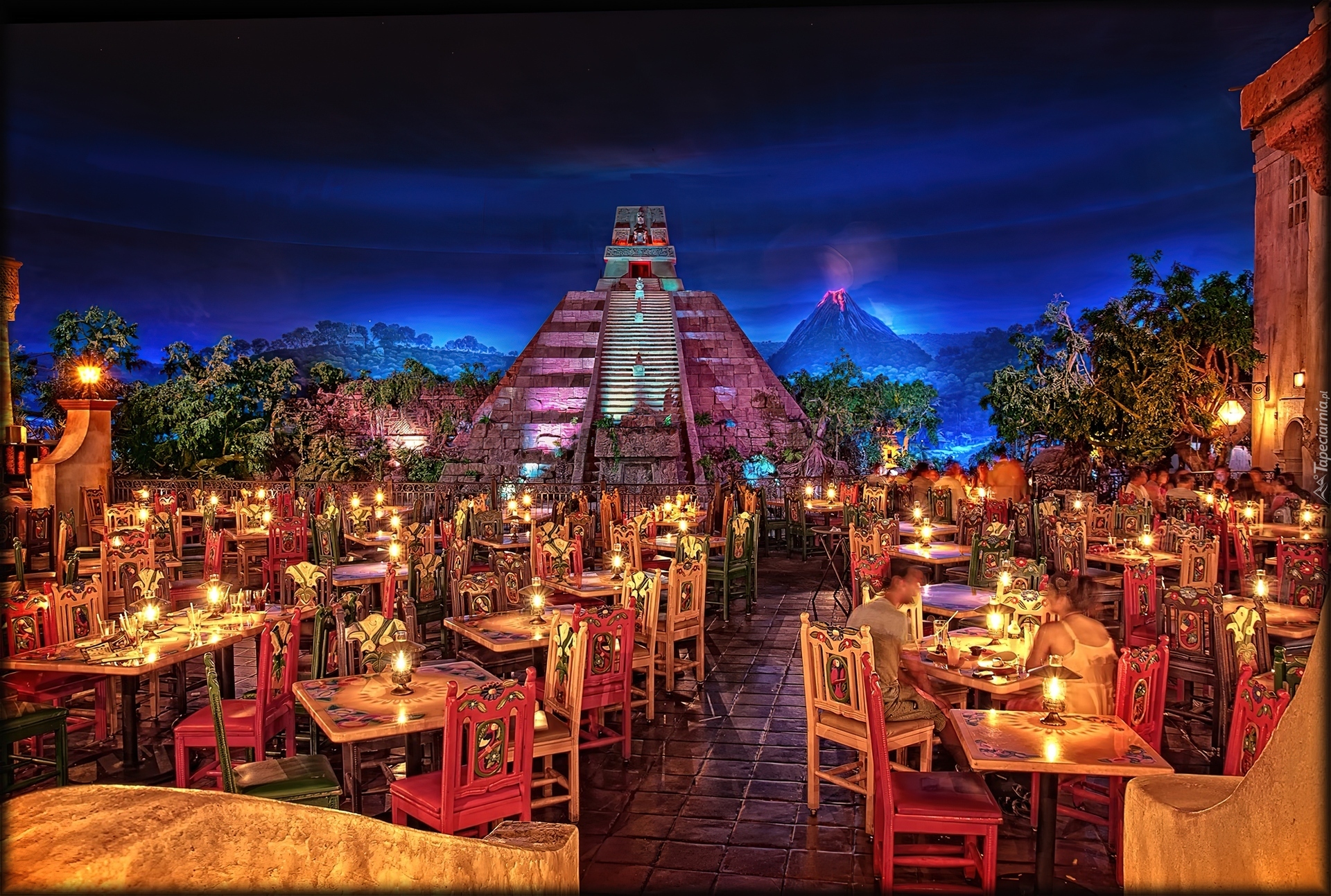 Edytor tapety: Restauracja, Wulkan, Stoliki, Krzesełka
