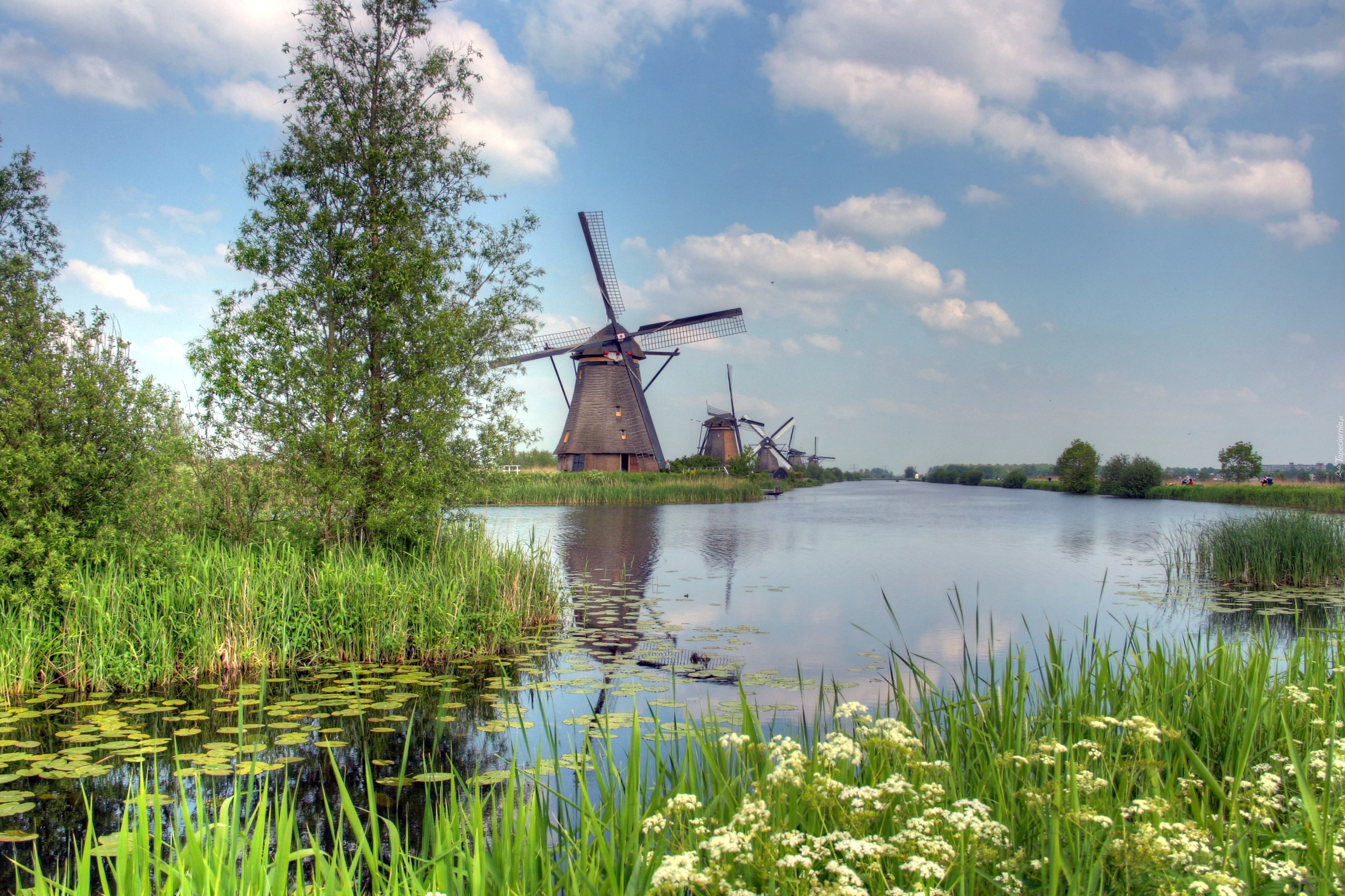 Edytor tapety: Wiatraki, Rzeka, Rośliny
