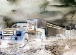 Edytor tapety: Samochód, Ford, Naczepa, Burza, Pioruny, Woda, Zwierzęta