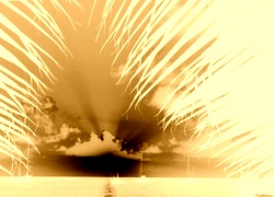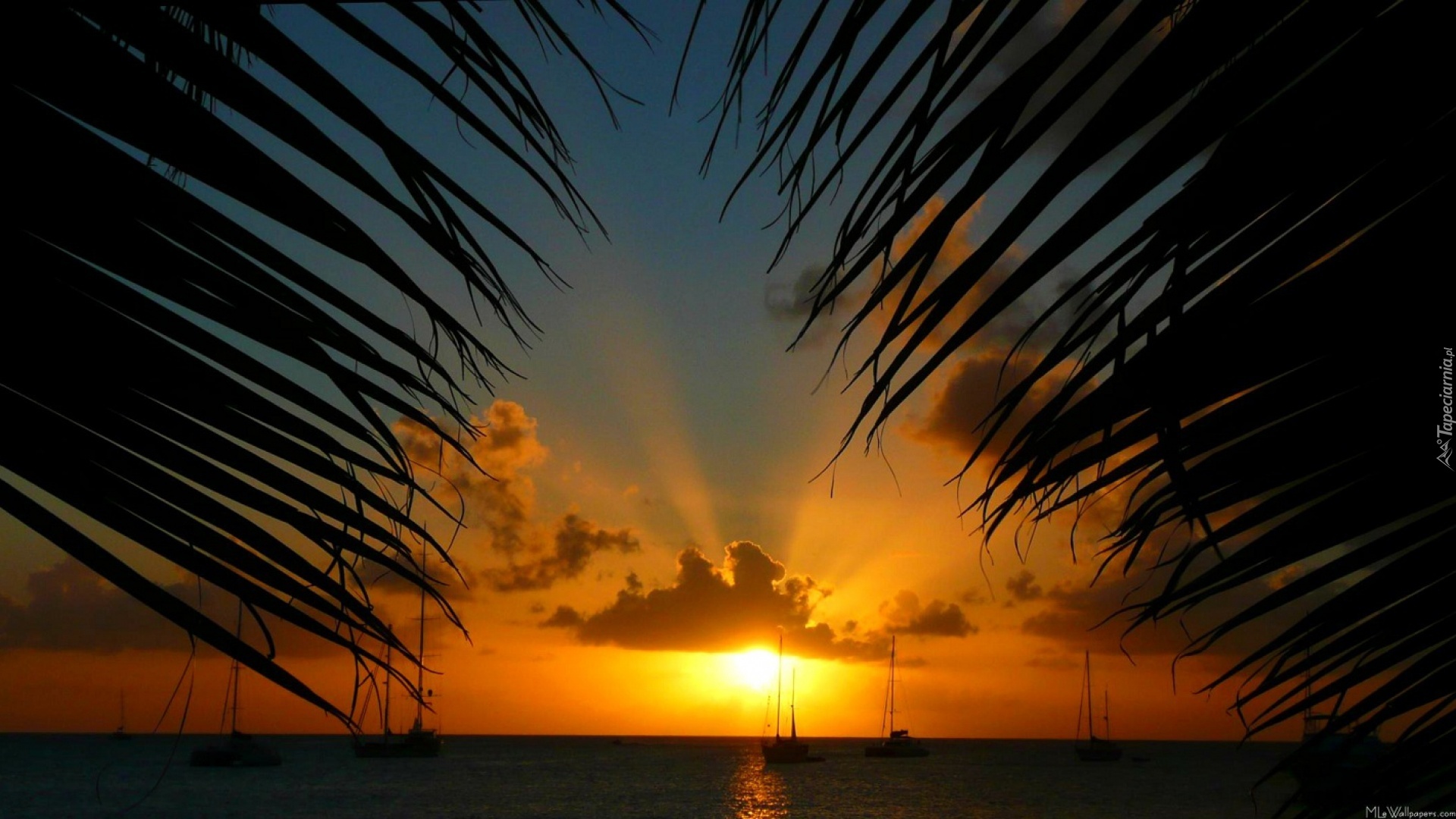 Edytor tapety: Zachód, Słońca, Morze, Liście, Palm