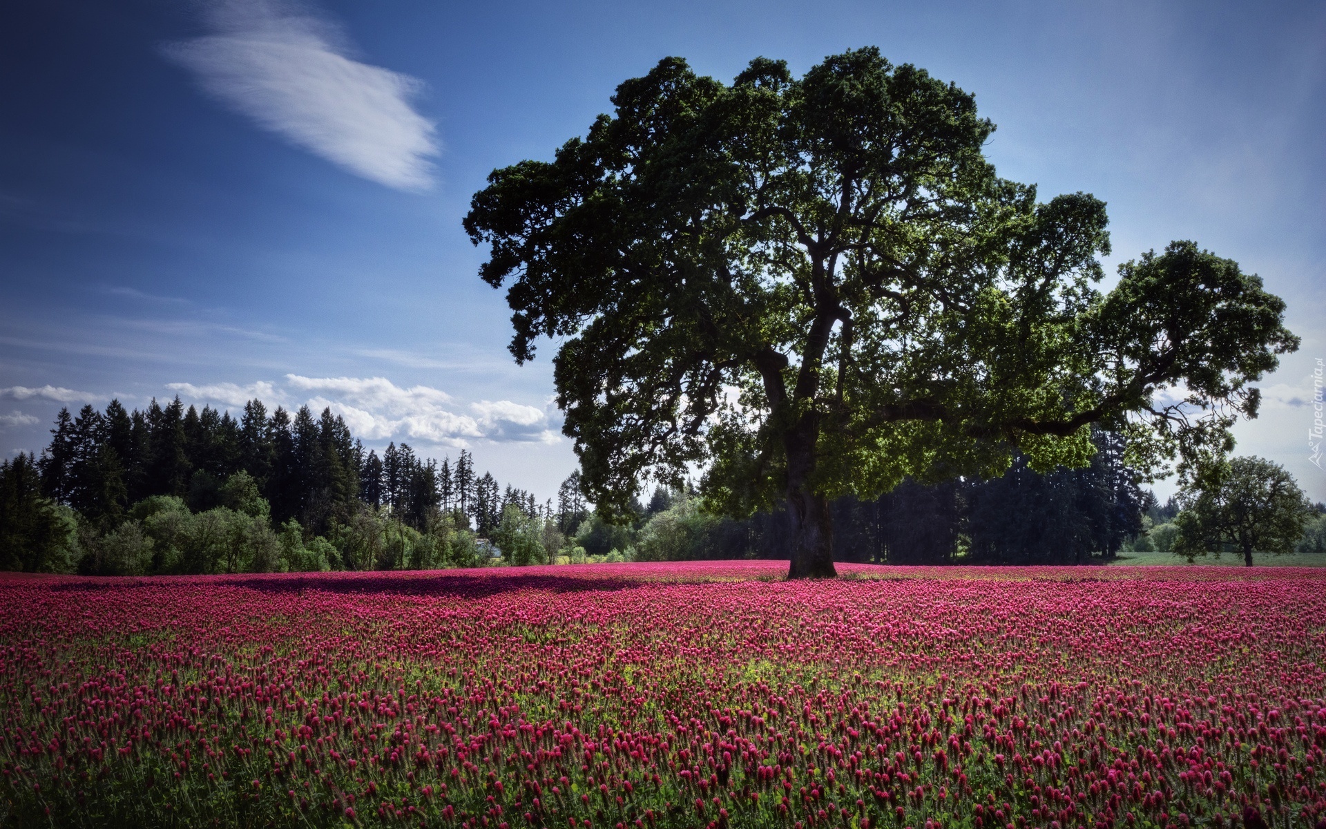 Edytor tapety: Łąka, Kwiaty, Drzewa, Niebo