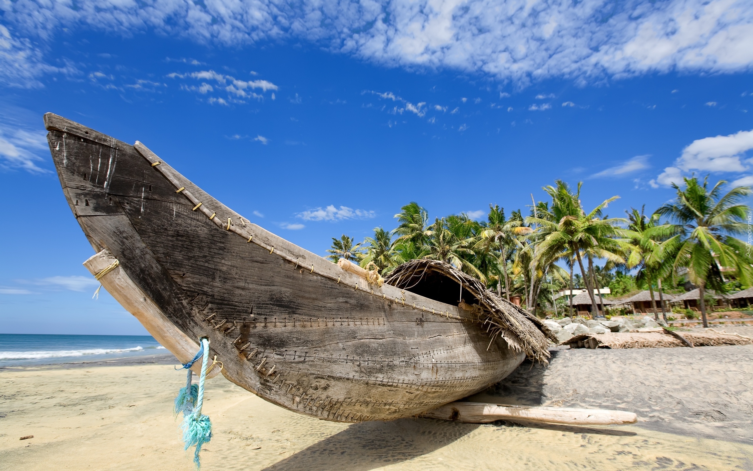Edytor tapety: Łódz, Plaża, Palmy, Tropik